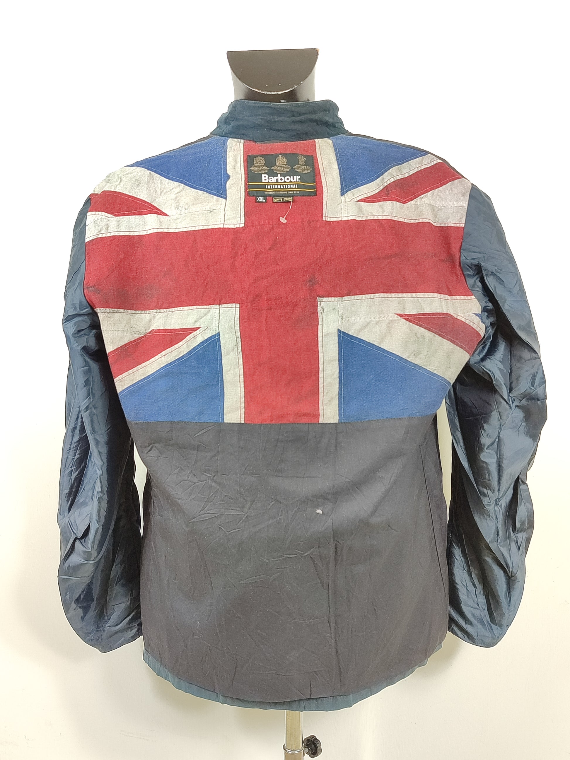 Giacca da uomo in cotone cerato Barbour International con Union Jack di colore blu