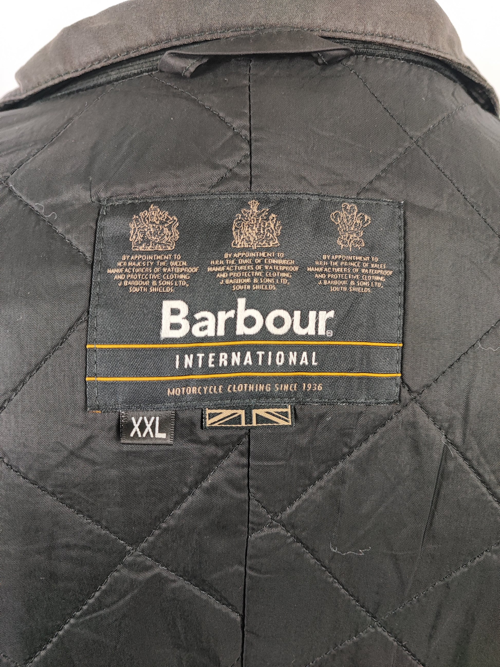 Fedele all'estetica da motociclista, presenta le quattro tasche esterne frontali , la chiusura centrale a doppio cursore , il colletto con chiusura a fibbia foderato in velluto a coste e il logo BARBOUR INTERNATIONAL sul braccio.