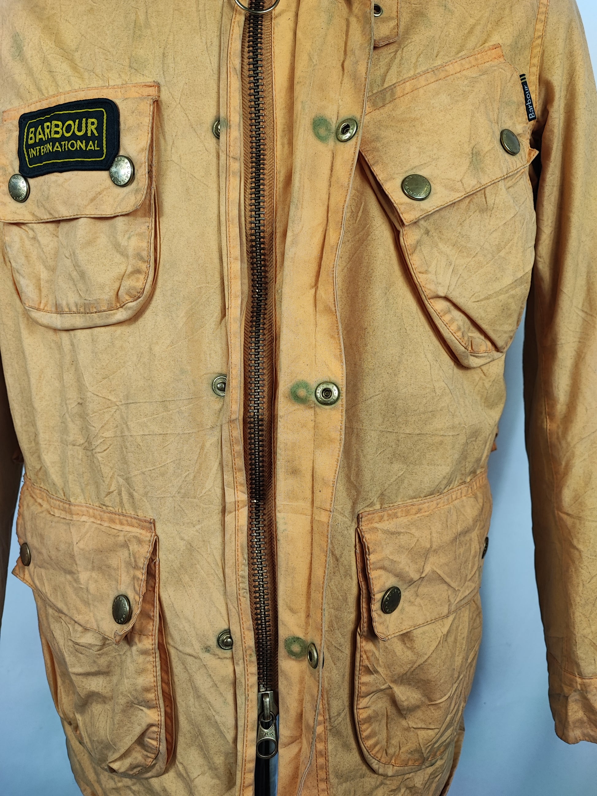 Giacca molto rara della linea Barbour International modello A7 Bright Colors Brass di colore giallo come da foto.