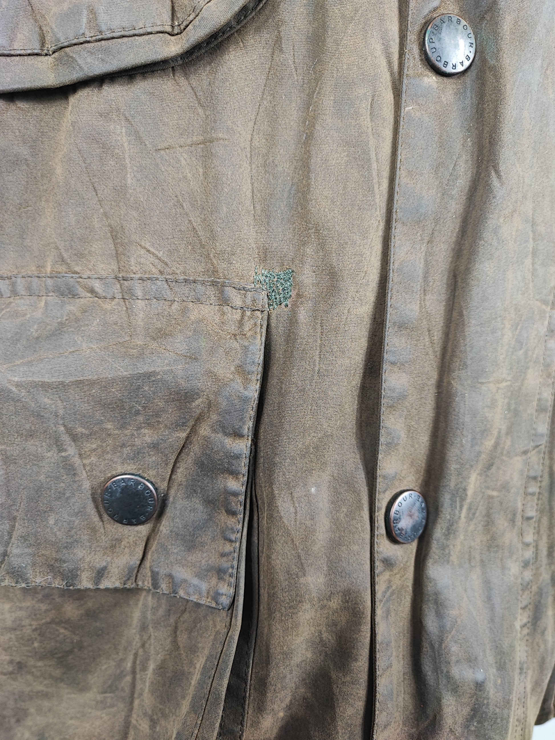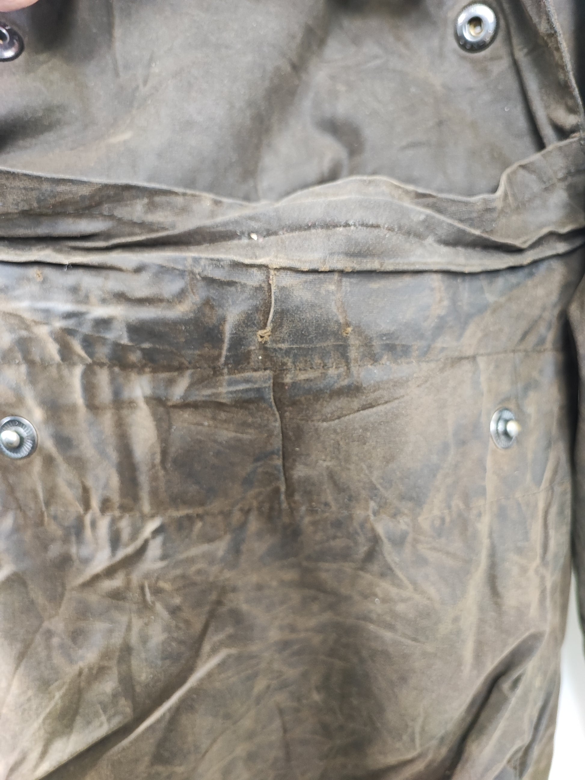 Buone condizioni. Manca la cintura. Lieve usura tasca sinistra, riparazione tasca destra.La giacca è di SECONDA MANO.