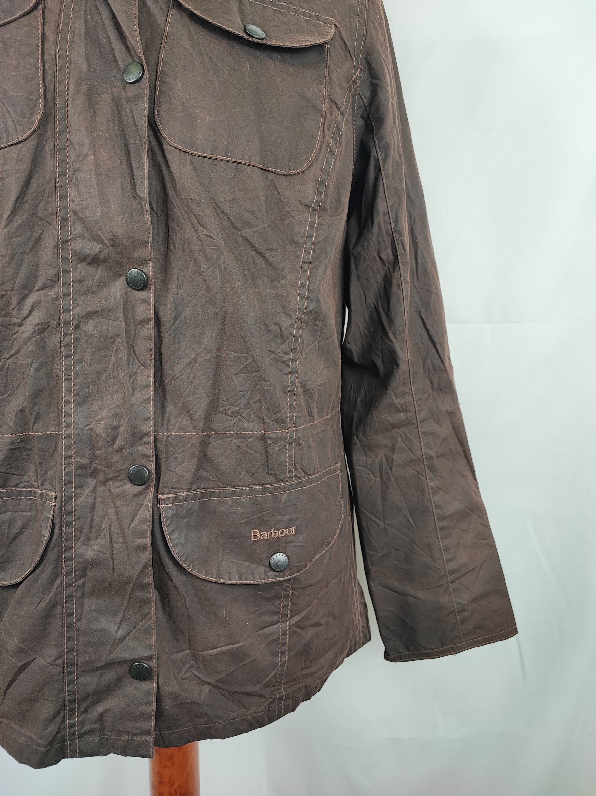 Giacca Barbour marrone cerata da donna Small Uk10 Lady brown Lighweight Sapper Jacket 10