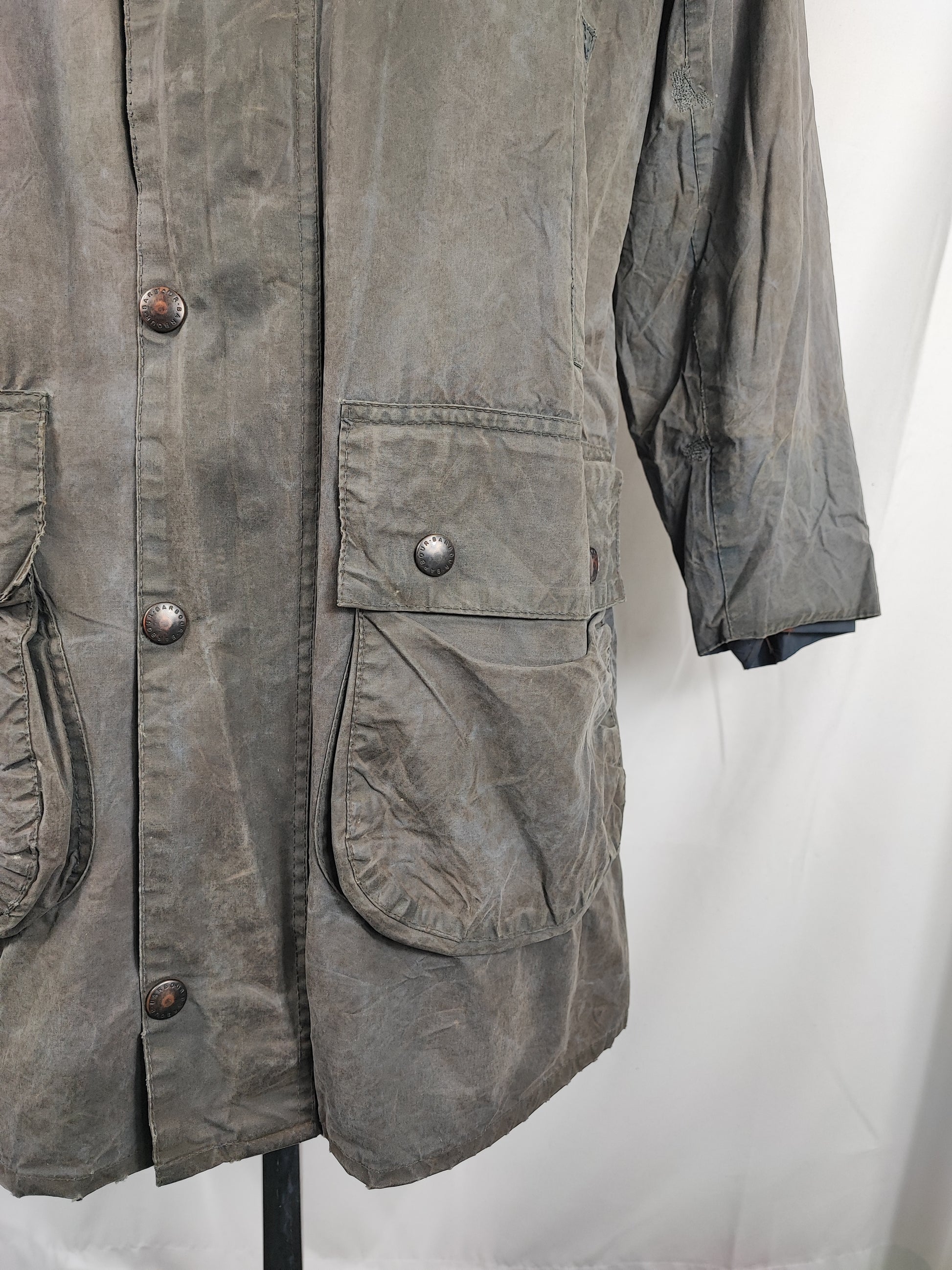 Buone condizioni. Colore come da foto. Si può ravvivare ricerando la giacca. Ci sono delle piccole riparazioni come da foto. La giacca è di seconda mano.