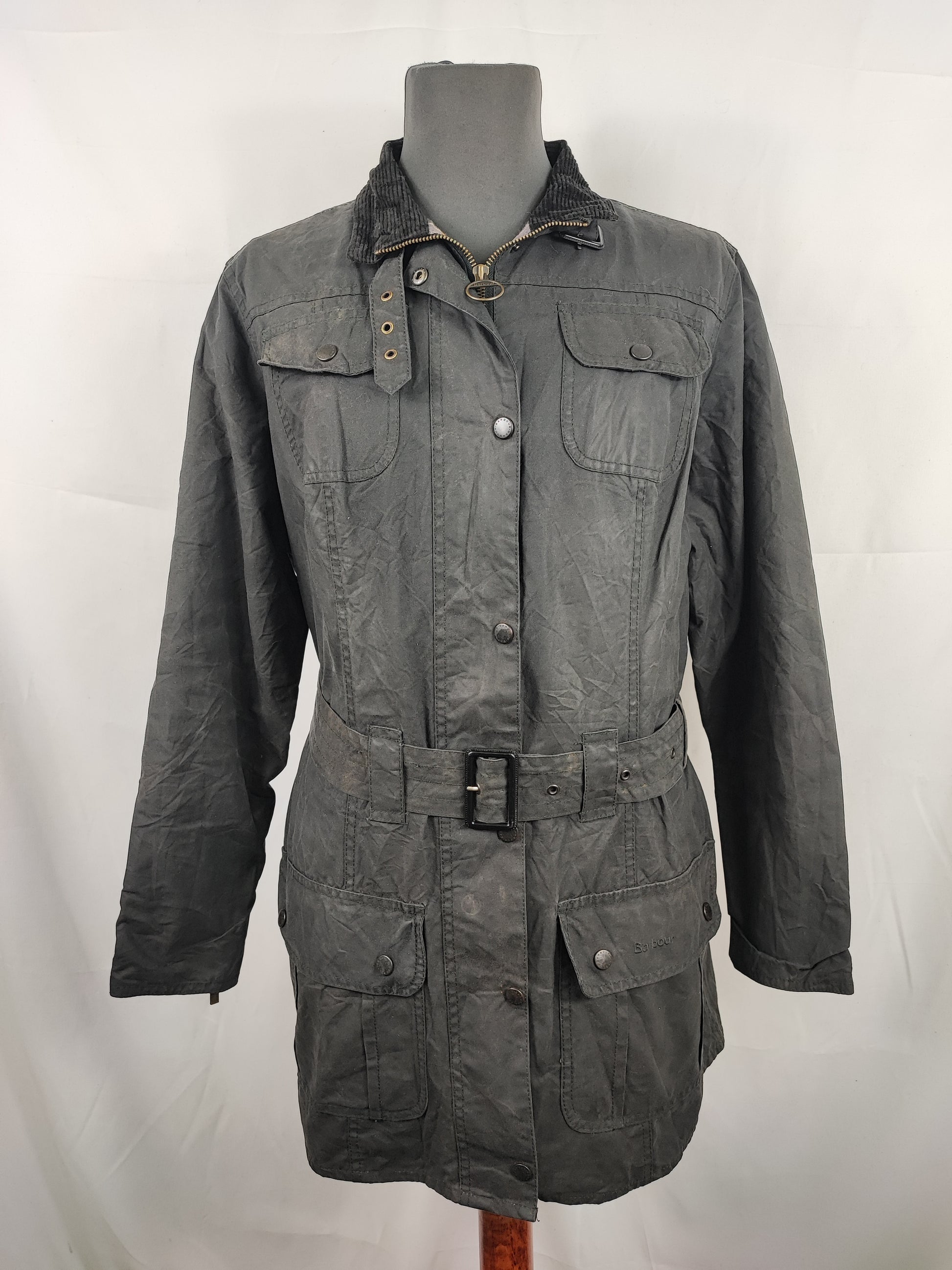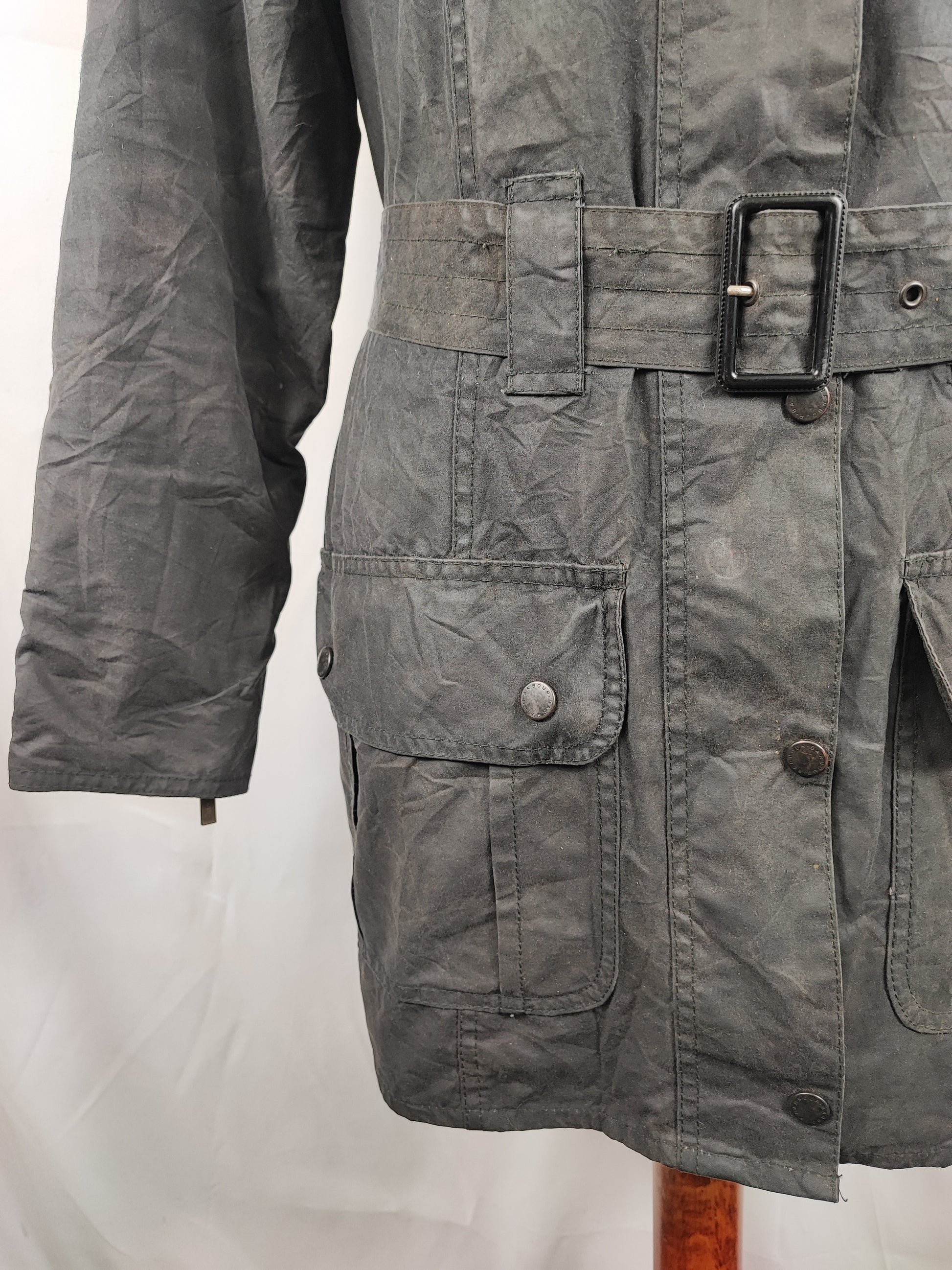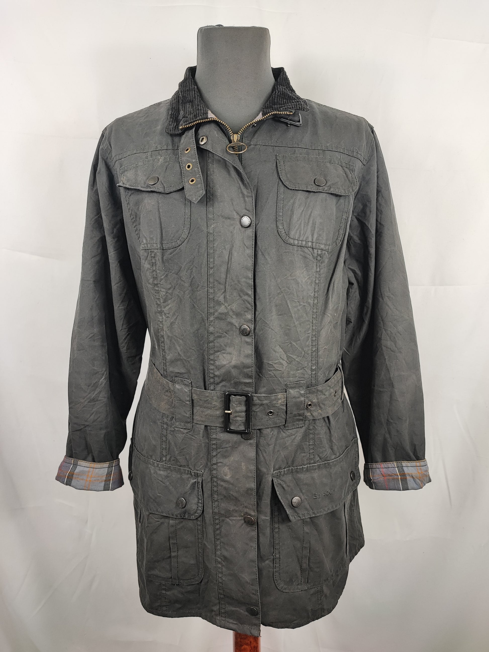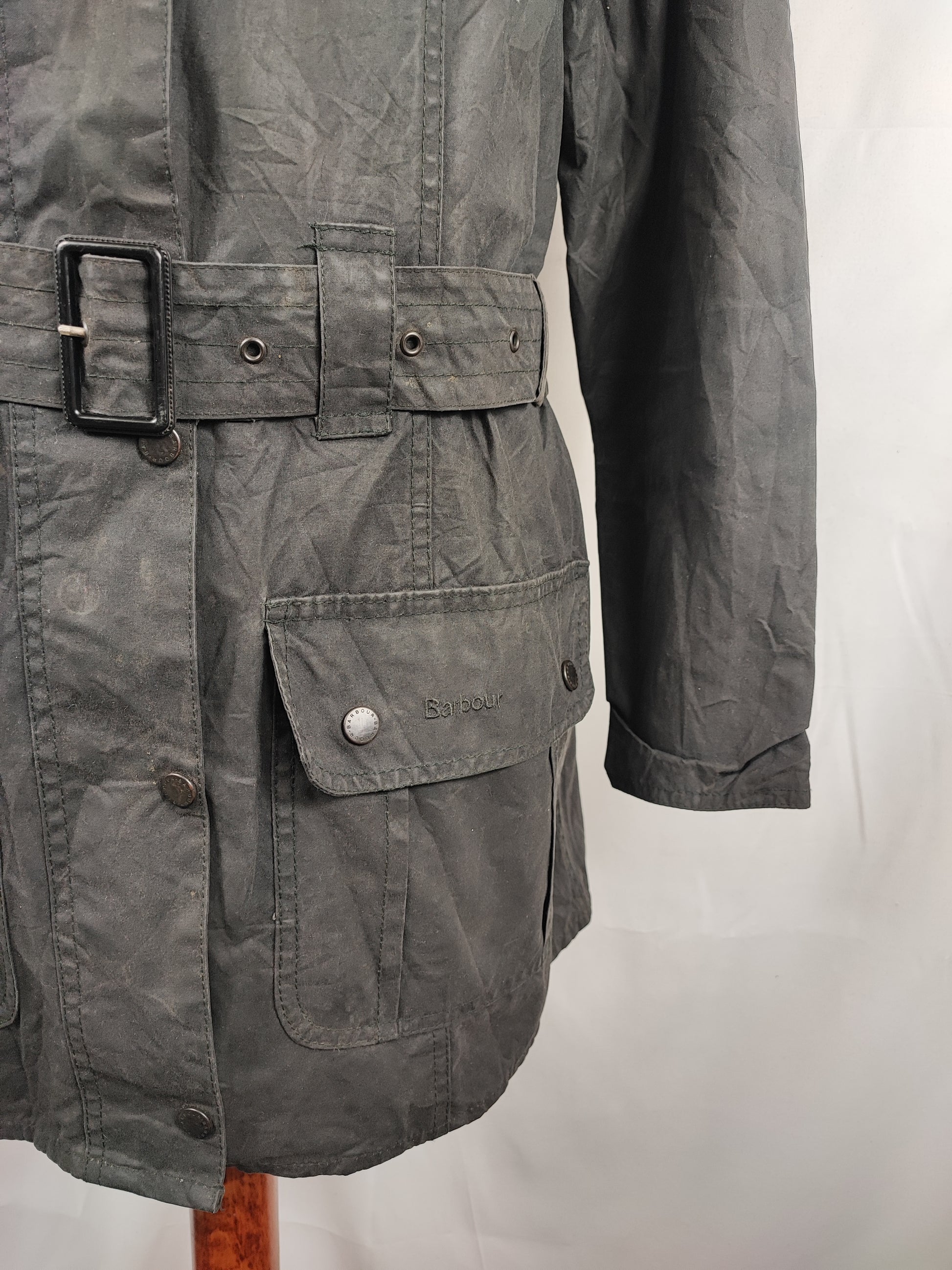 Giacca Barbour Unisex con cintura nera utility mac UK16 tg.46 - Black Waxed Utility Mac Jacket UK16
