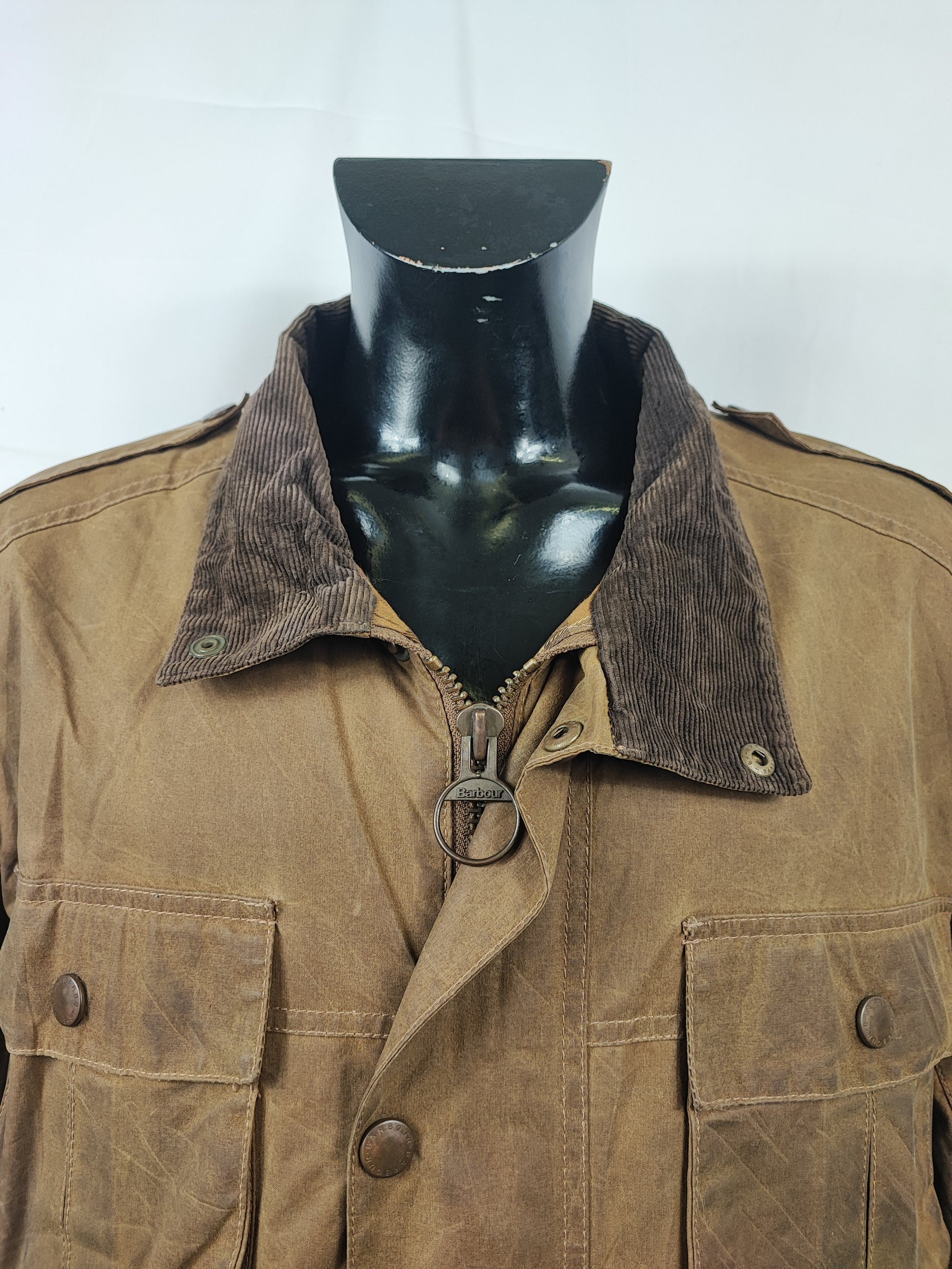Giacca Barbour Modello Trooper in cotone cerato. Quattro tasche frontali.