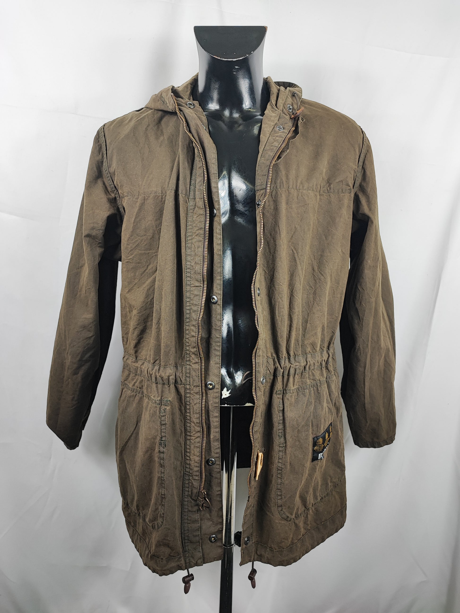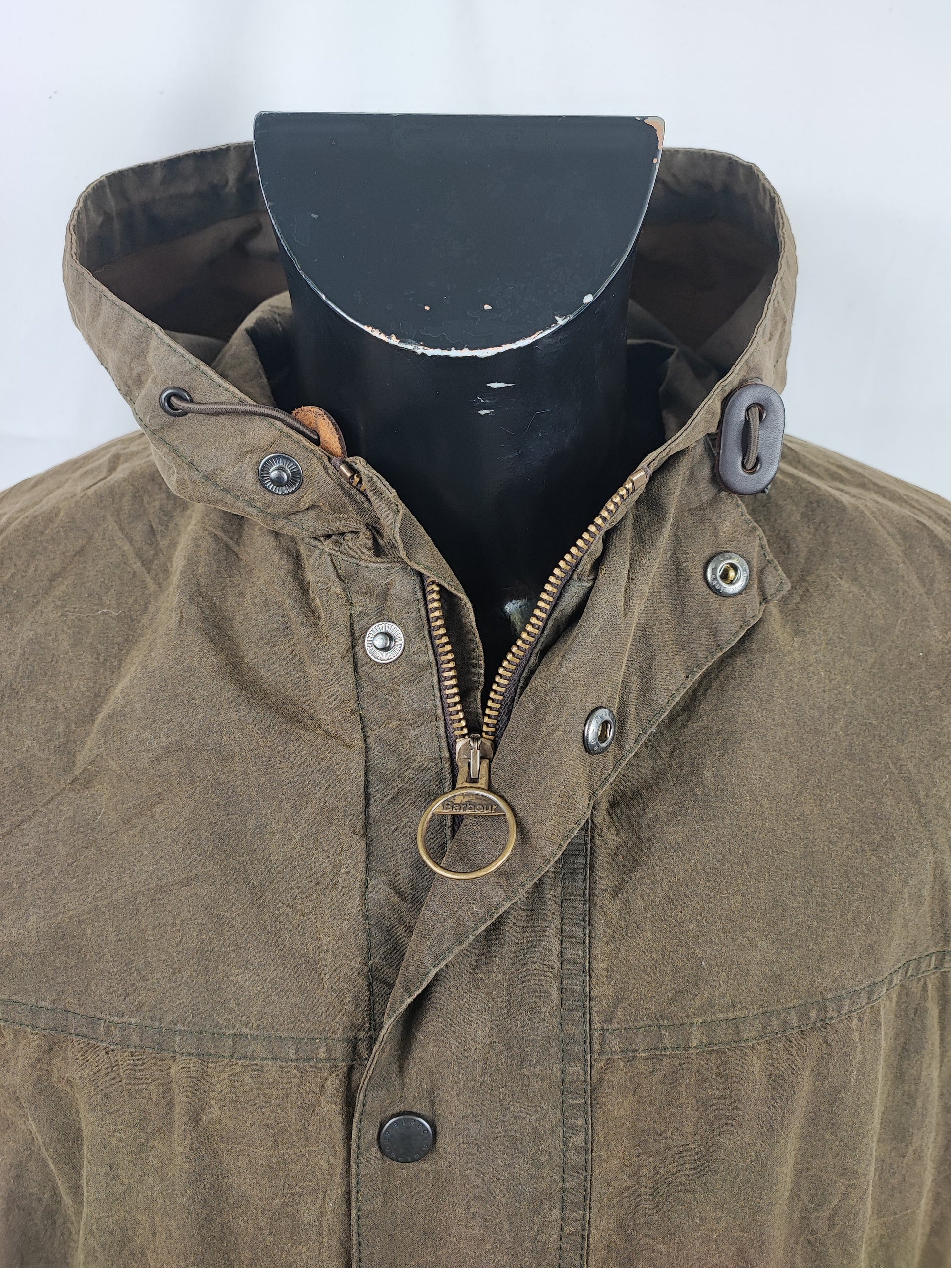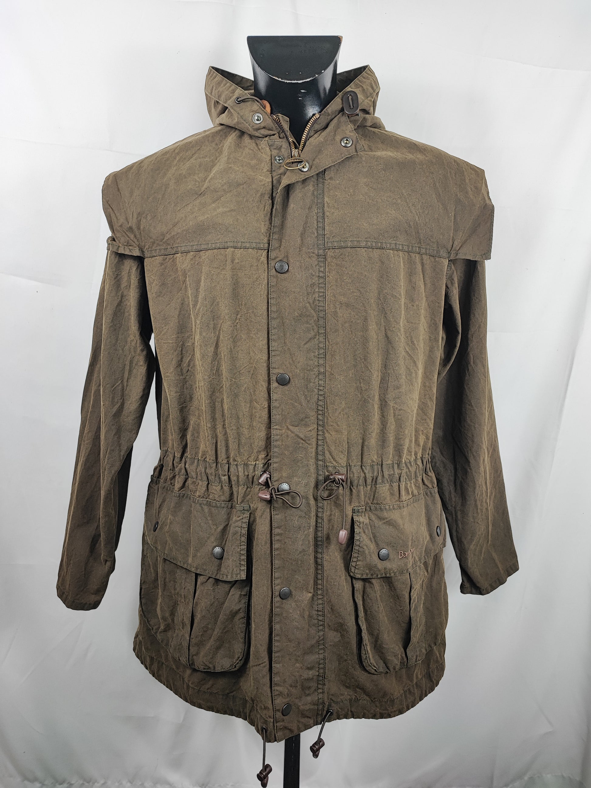 Giacca Barbour recente con cappuccio di colore verde oliva.