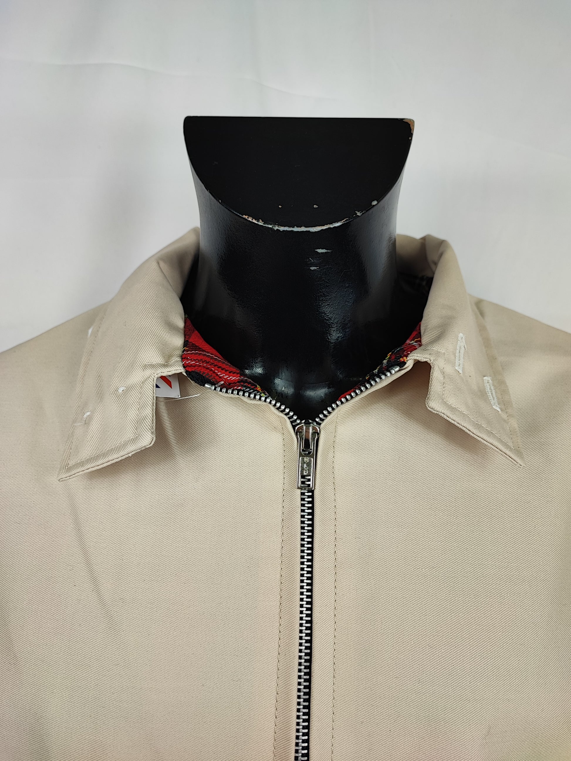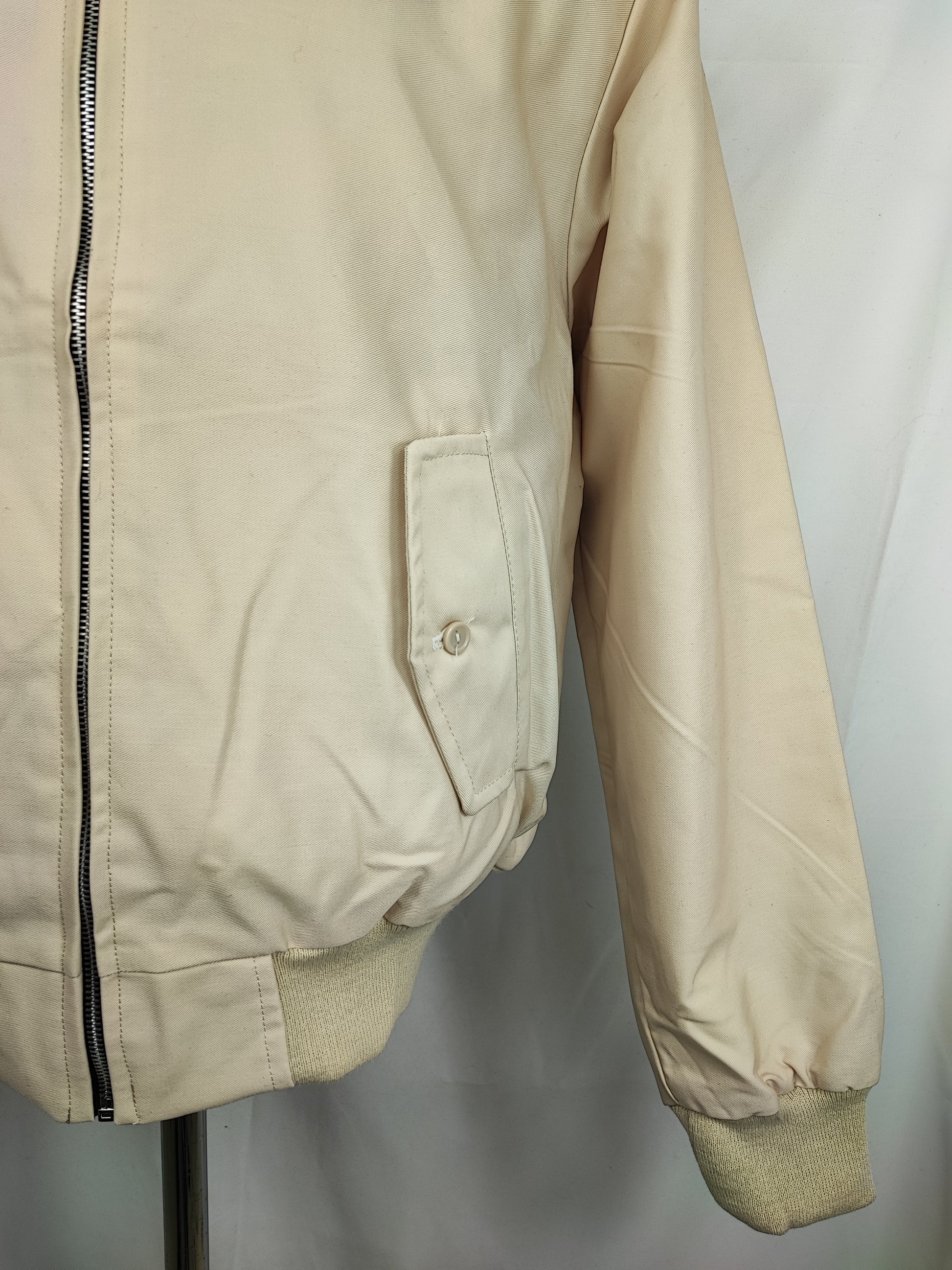 Giacca Harrington nuova tipo bomber da uomo di colore panna/ beige chiaro in cotone