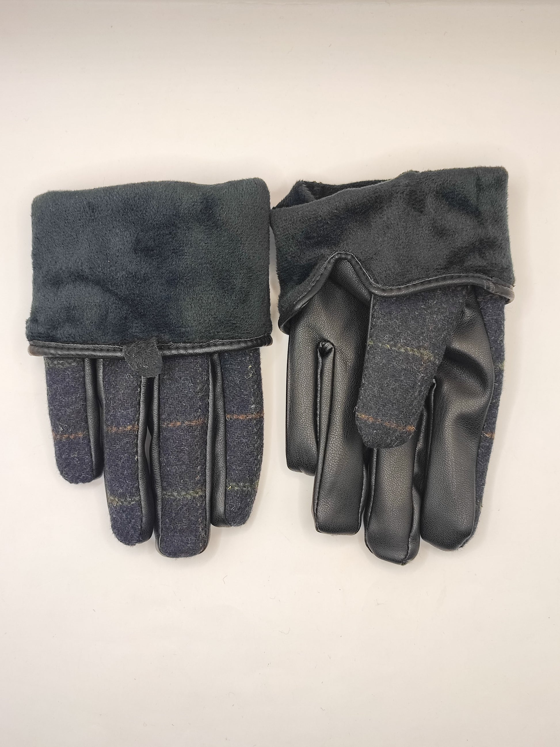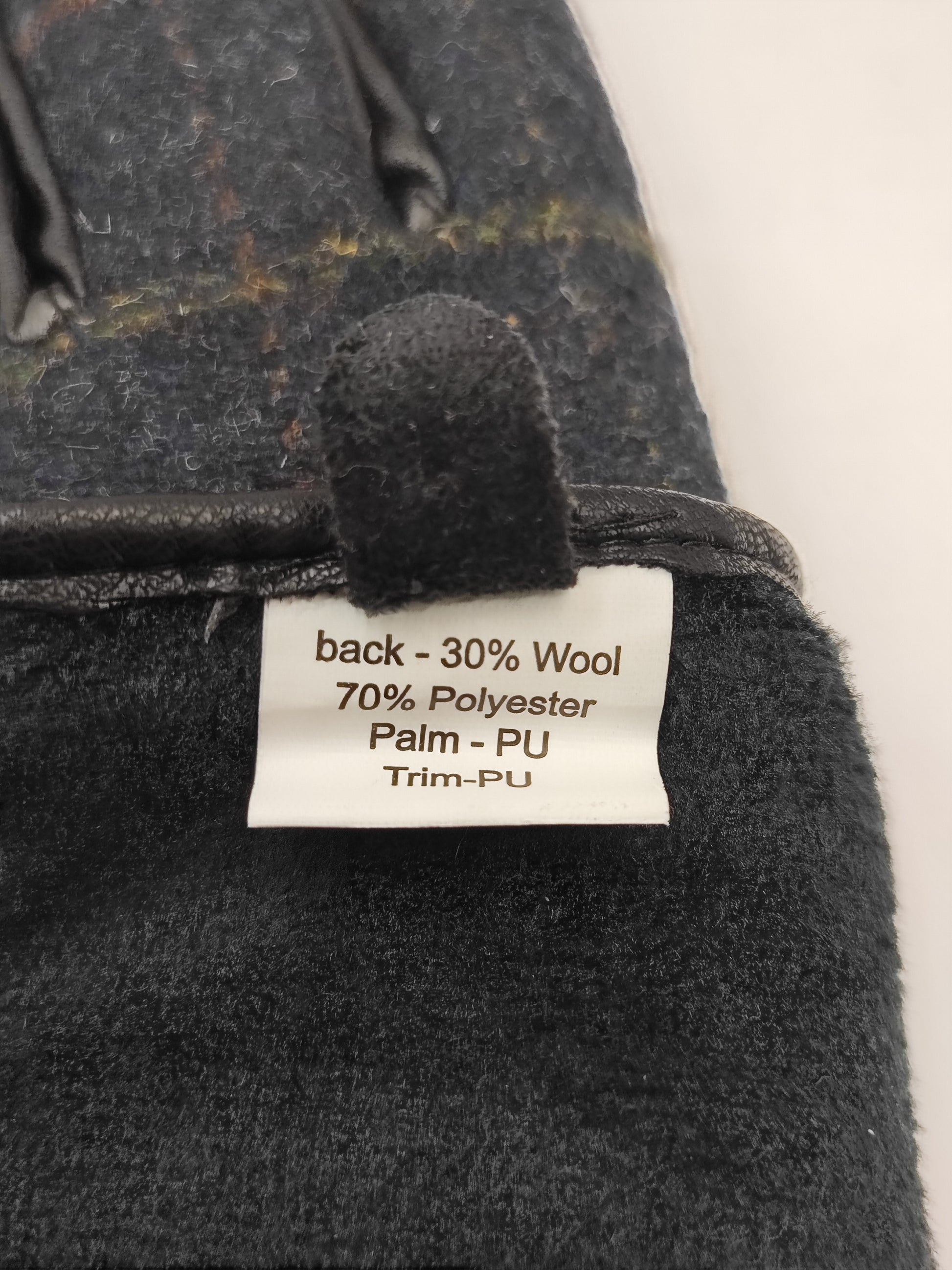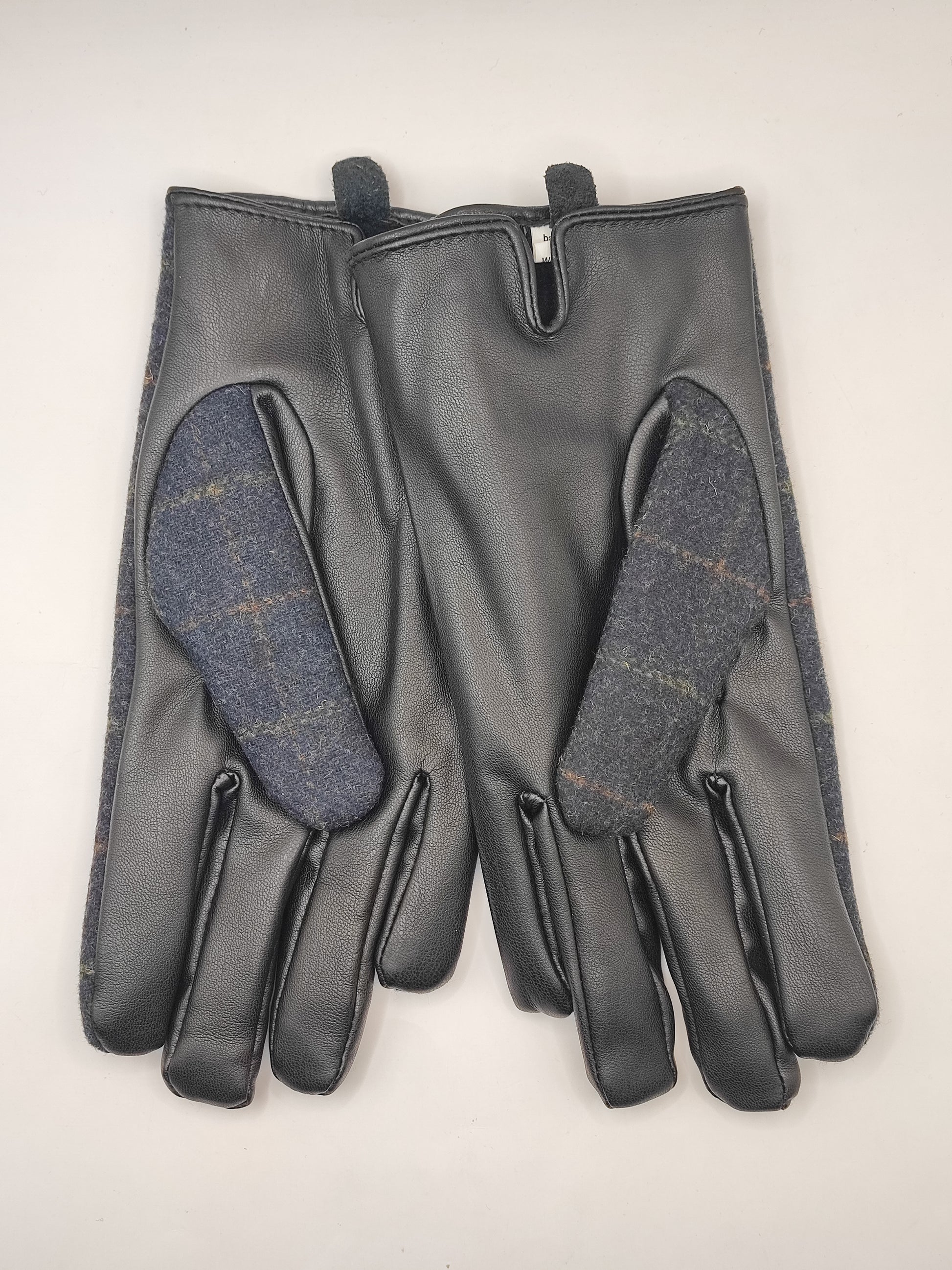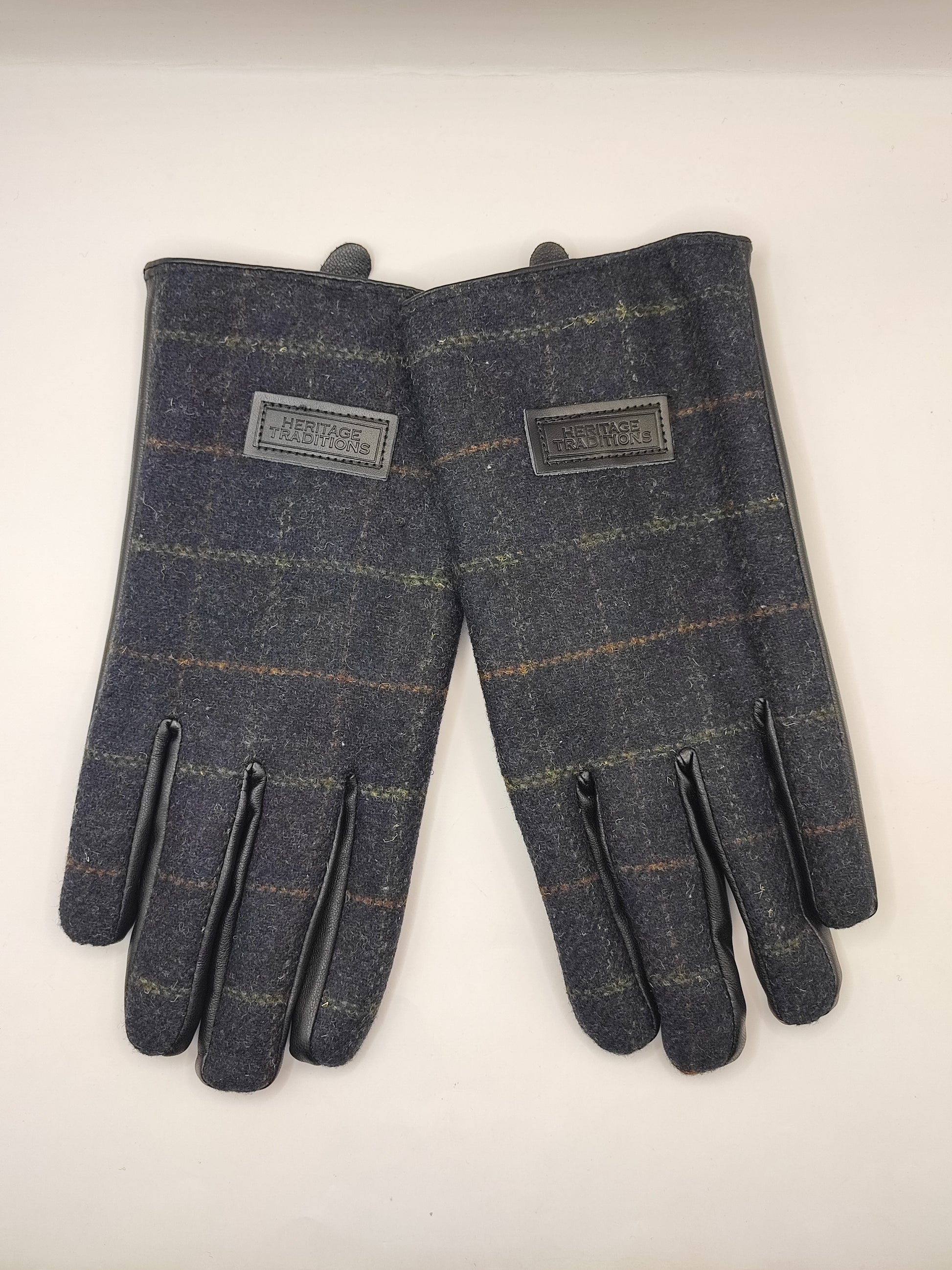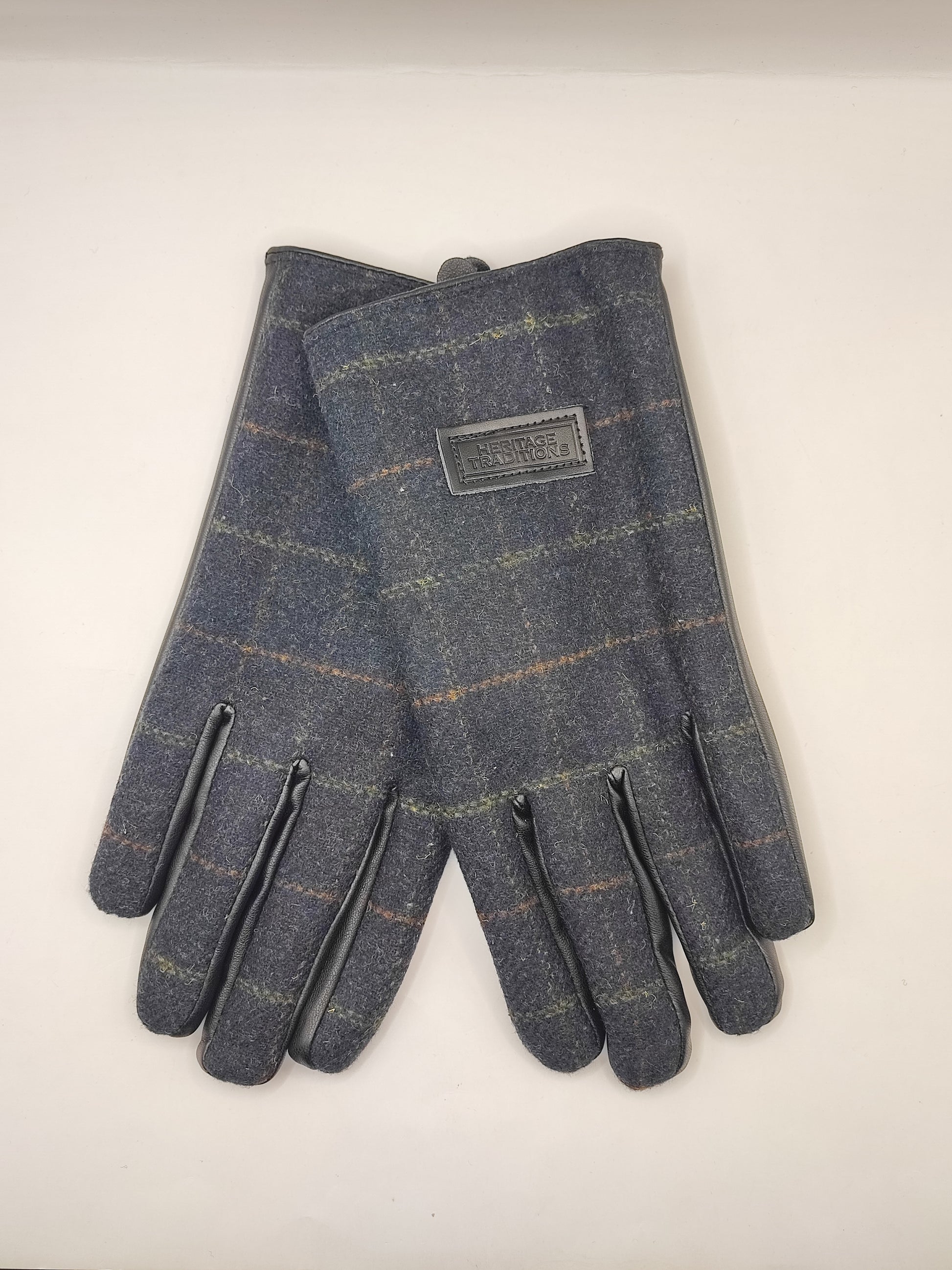 Guanti nuovi inglesi in lana fantasia tweed blu notte e ecopelle della marca Heritage Traditions