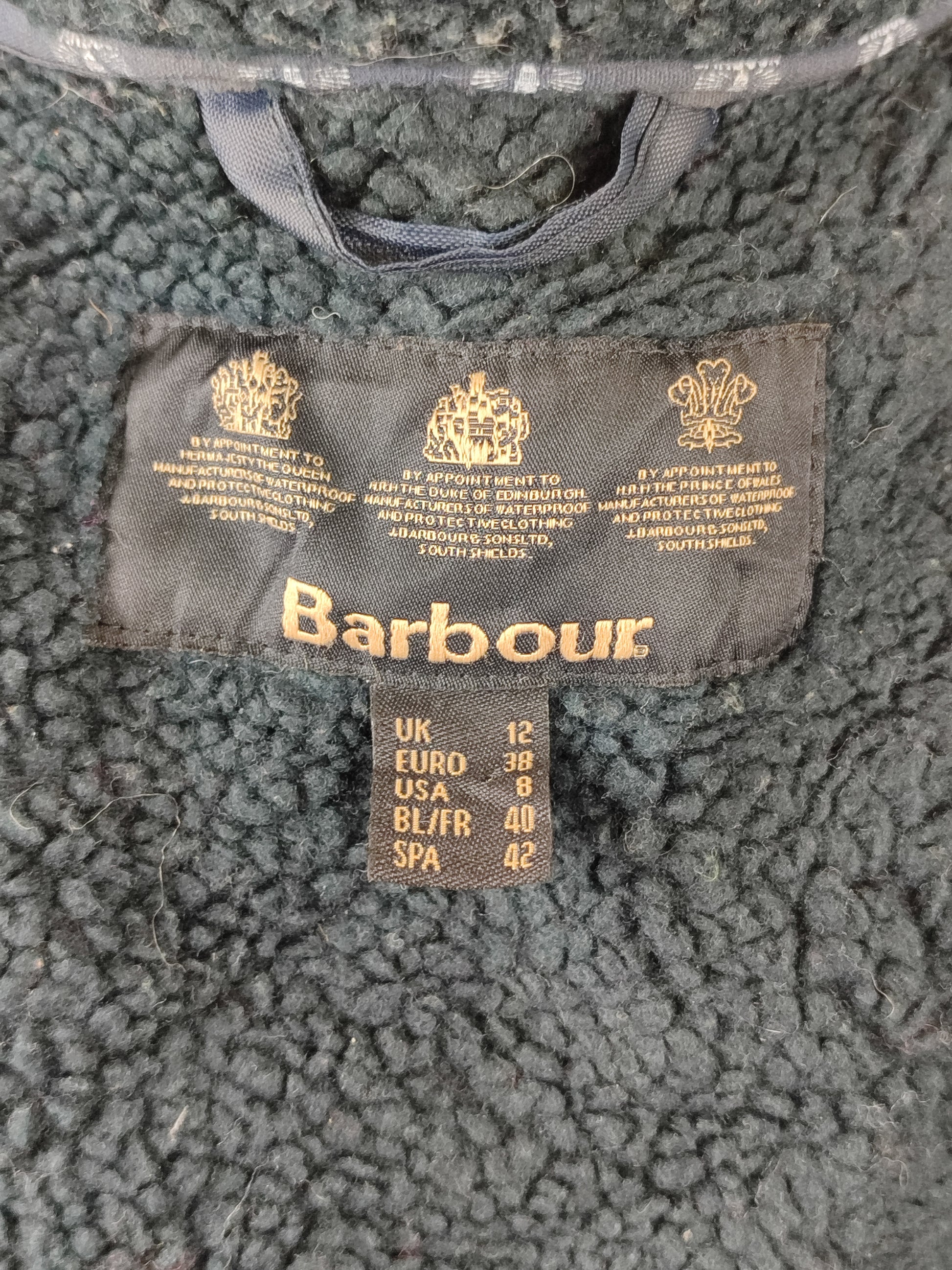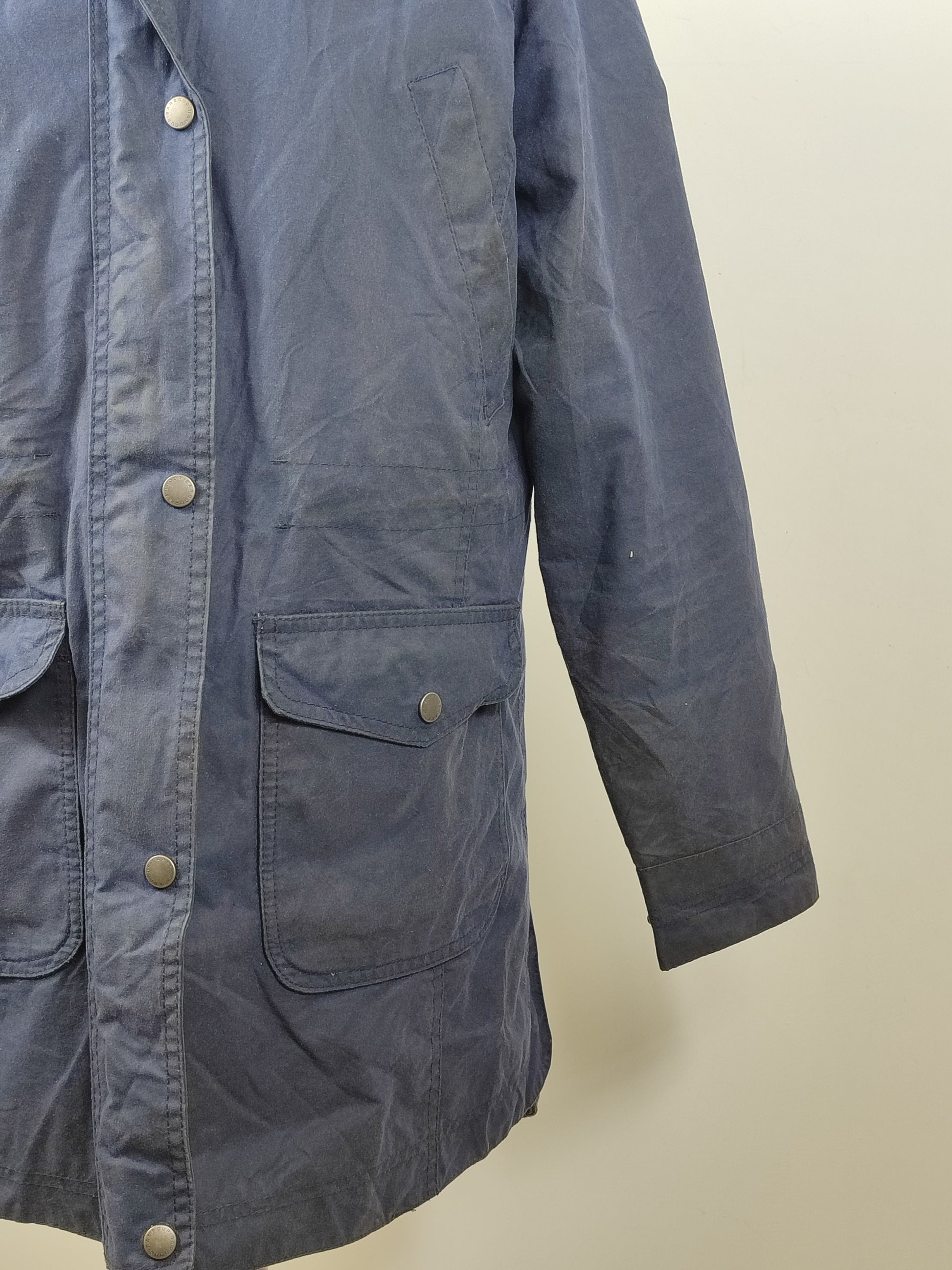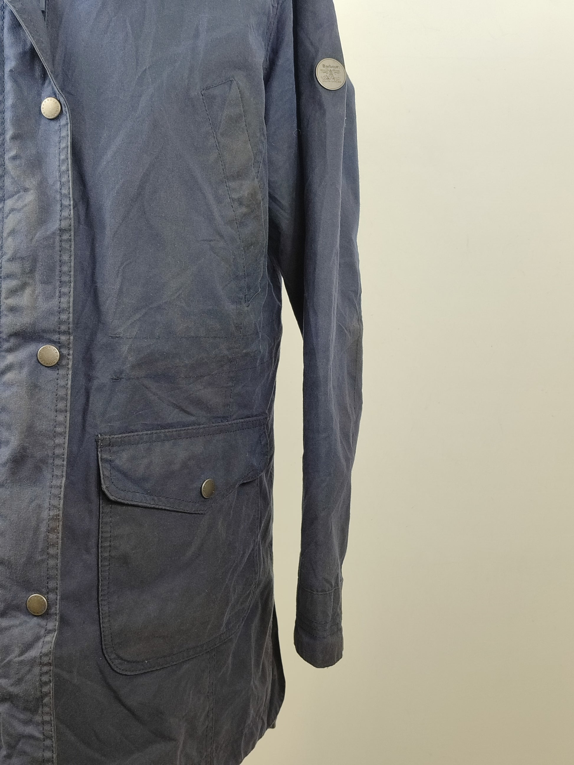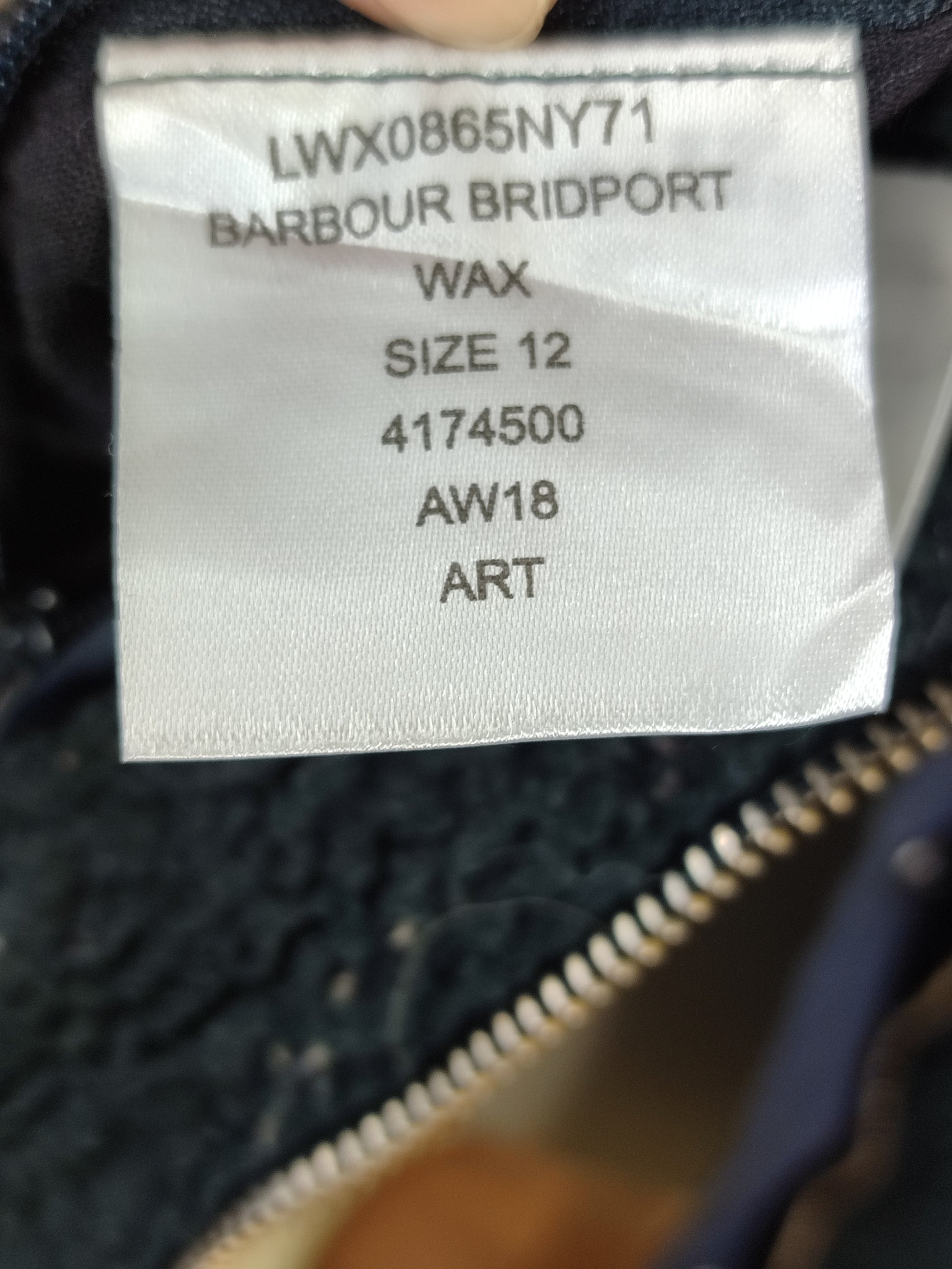 Giacca Barbour blu imbottito da donna UK12 Medium -Lady Navy wax Bridport coat size UK12