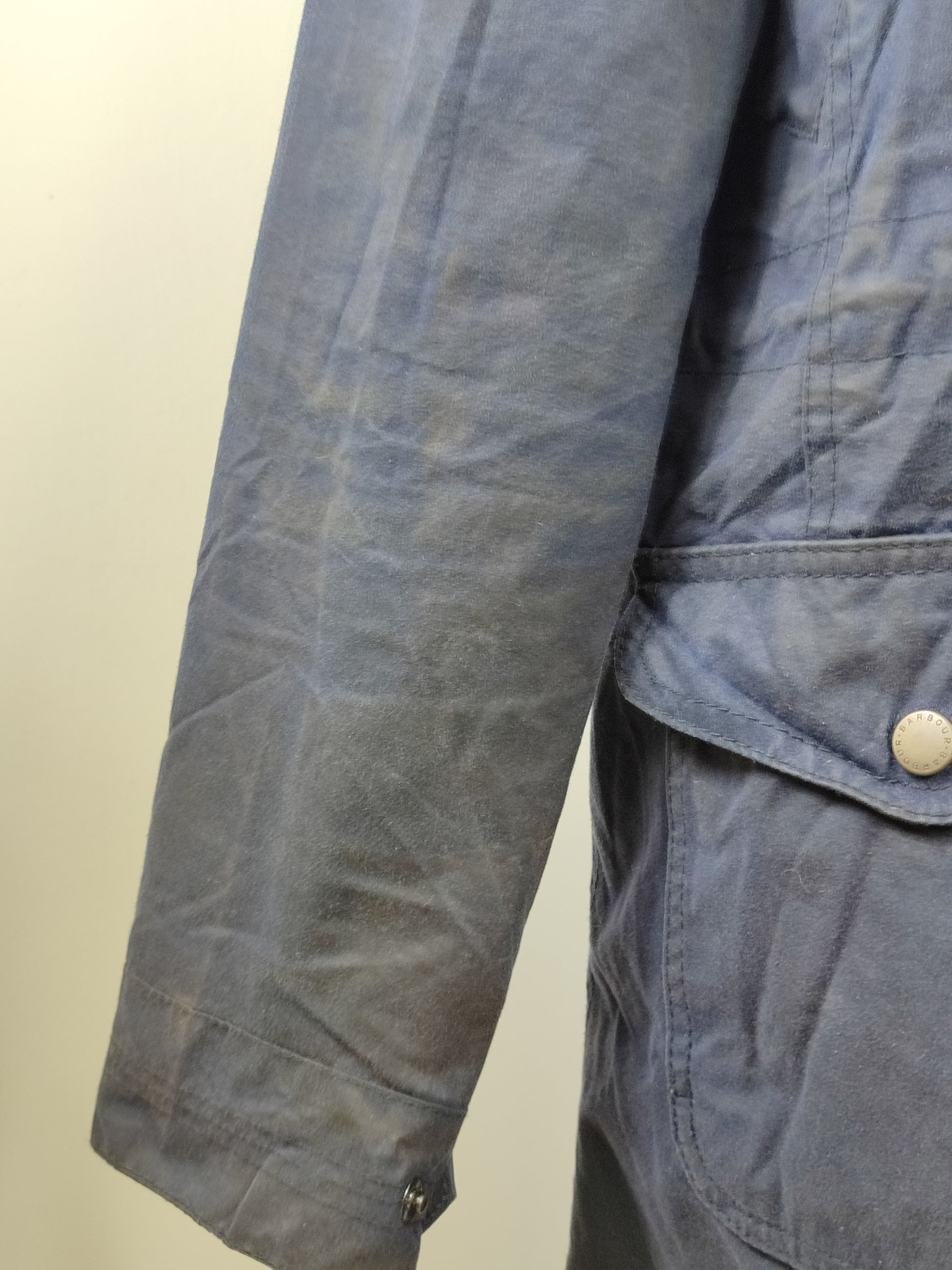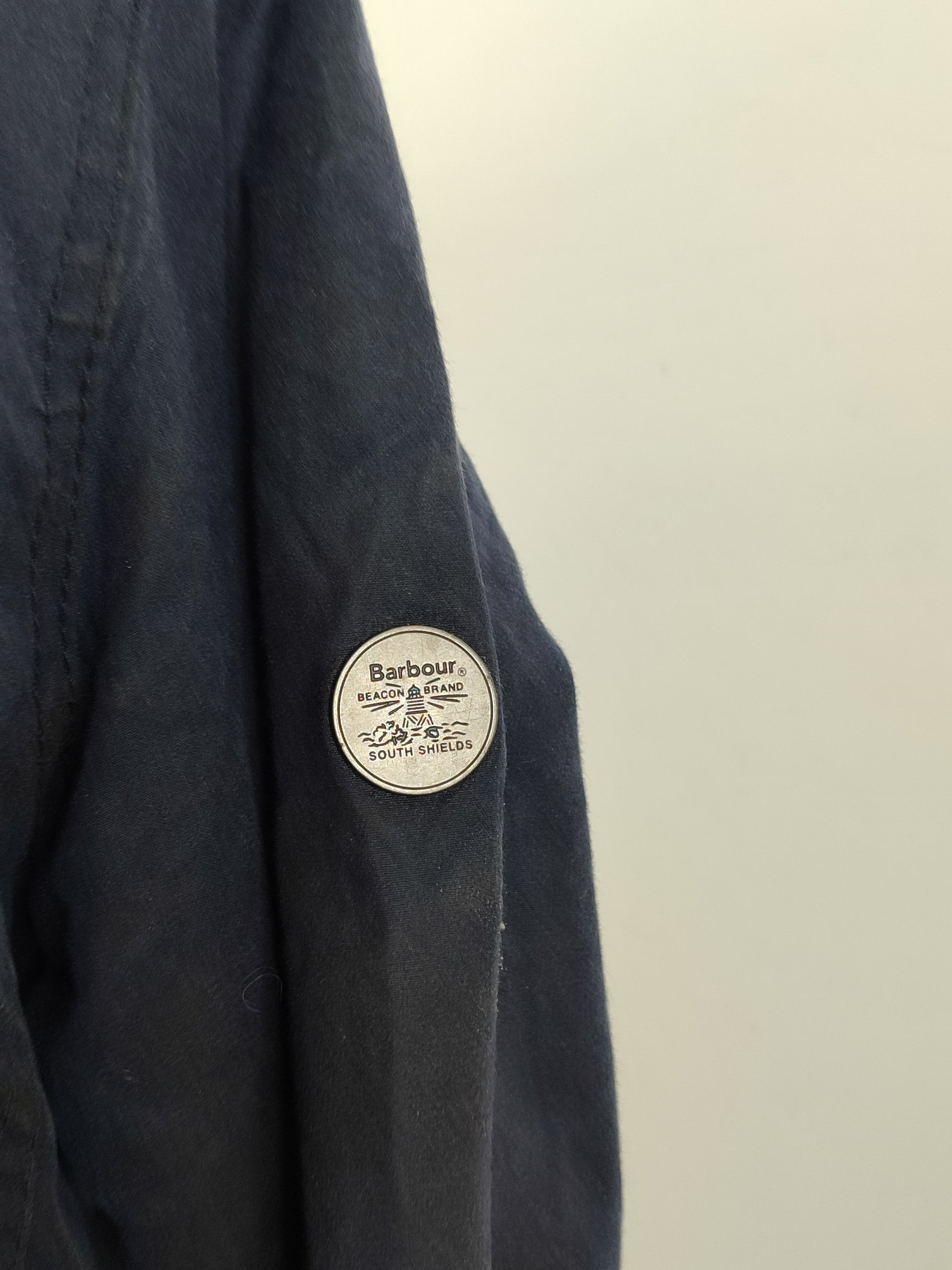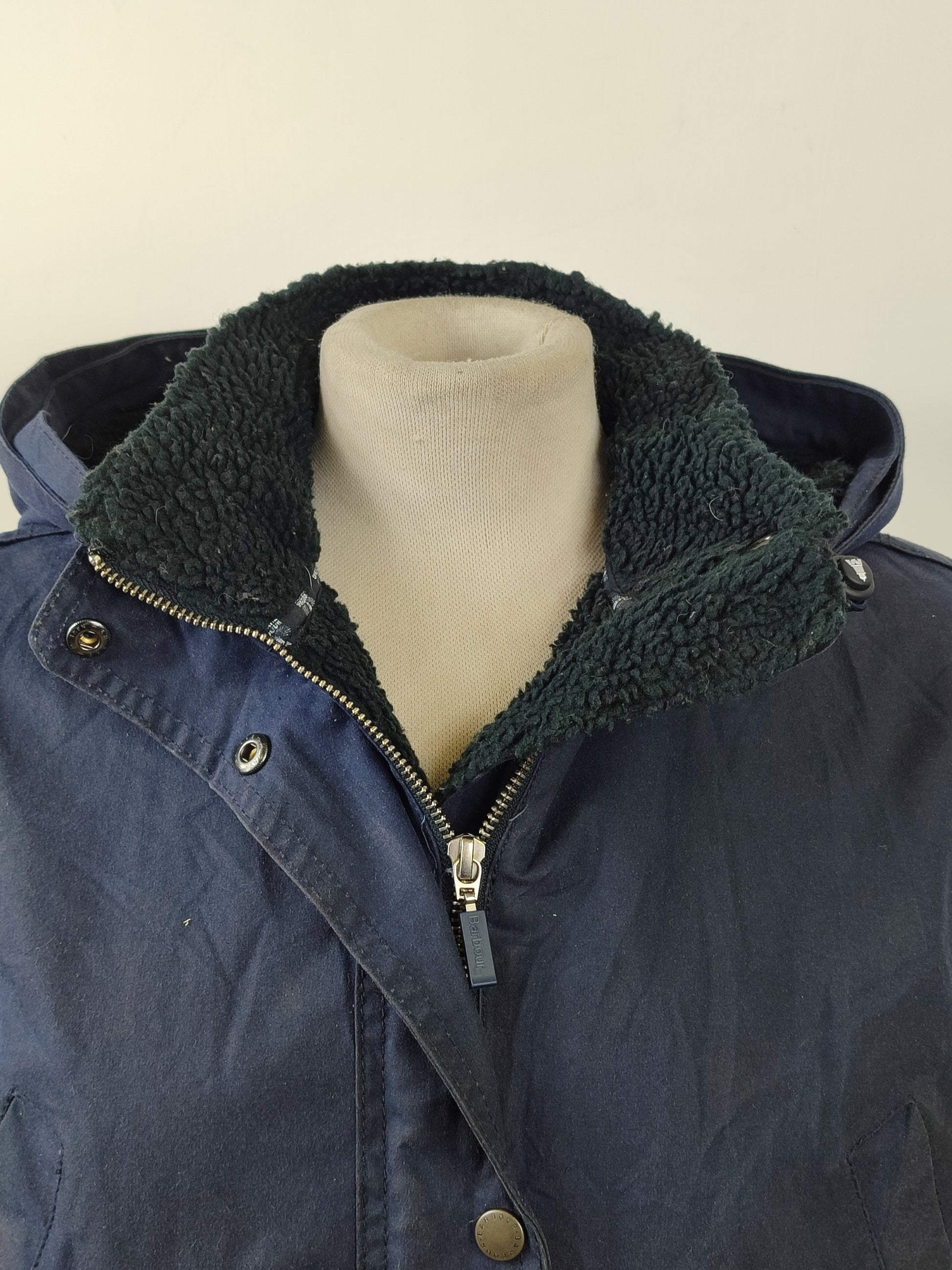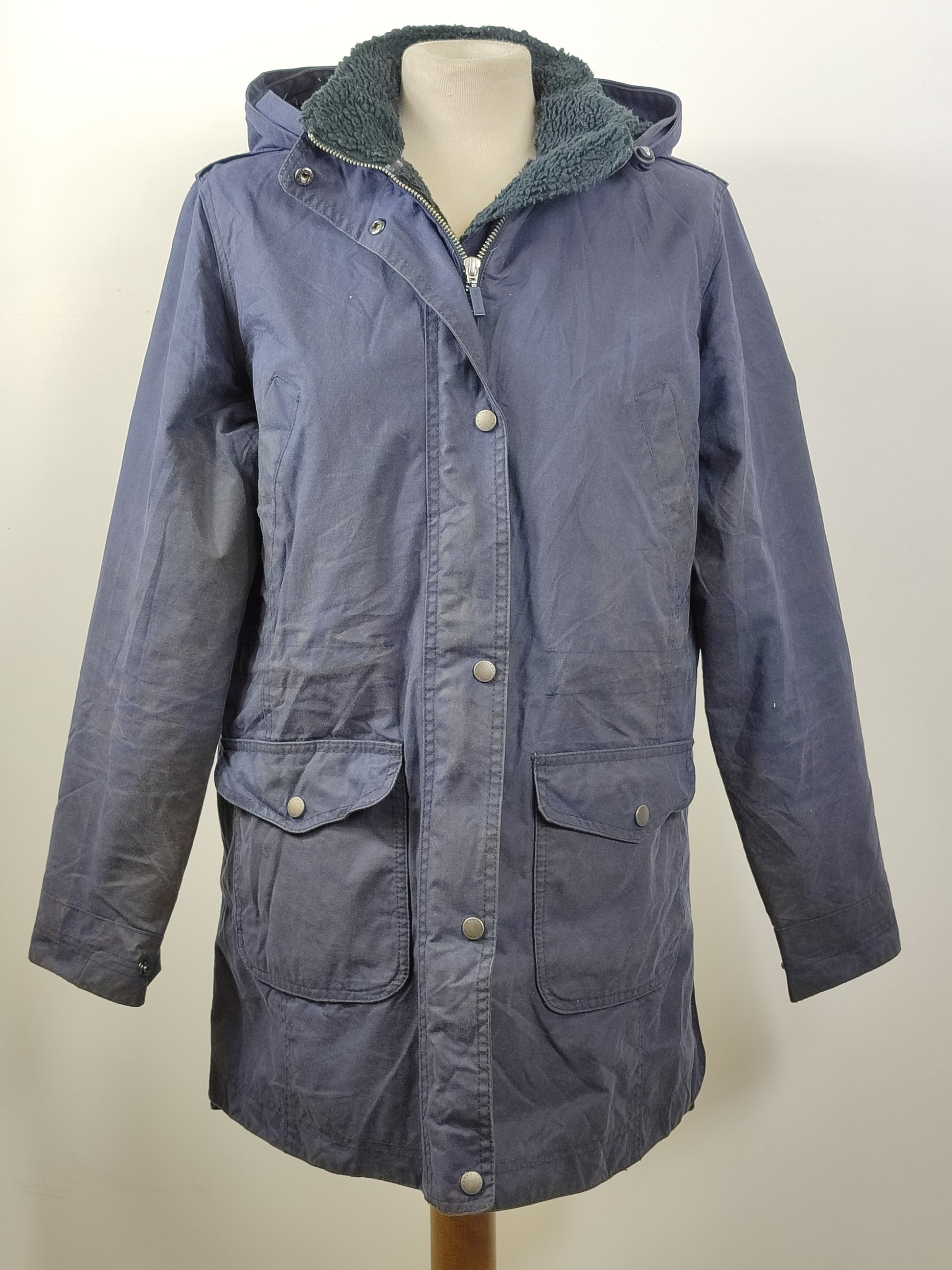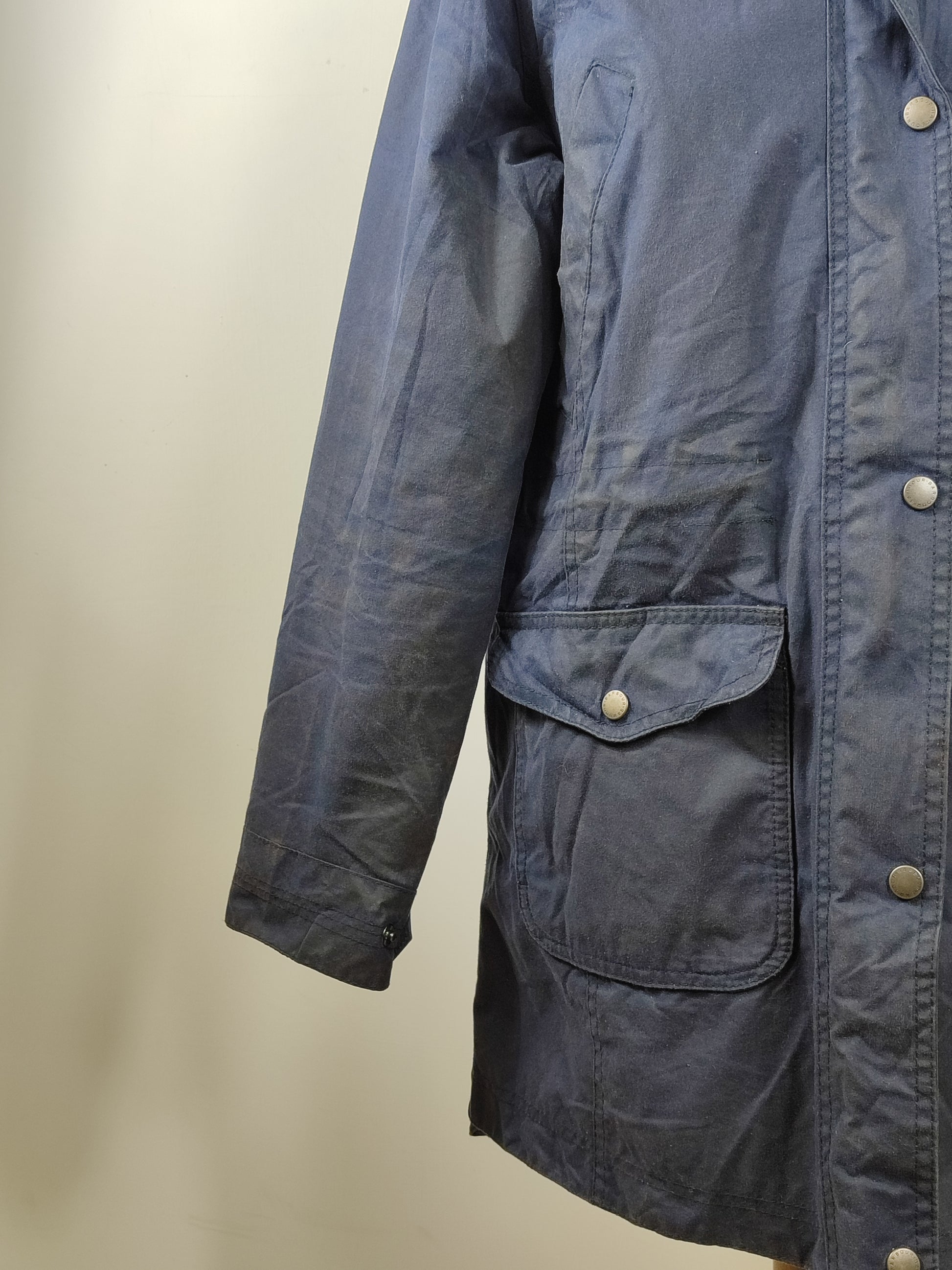 Giacca Barbour blu imbottito da donna UK12 Medium -Lady Navy wax Bridport coat size UK12