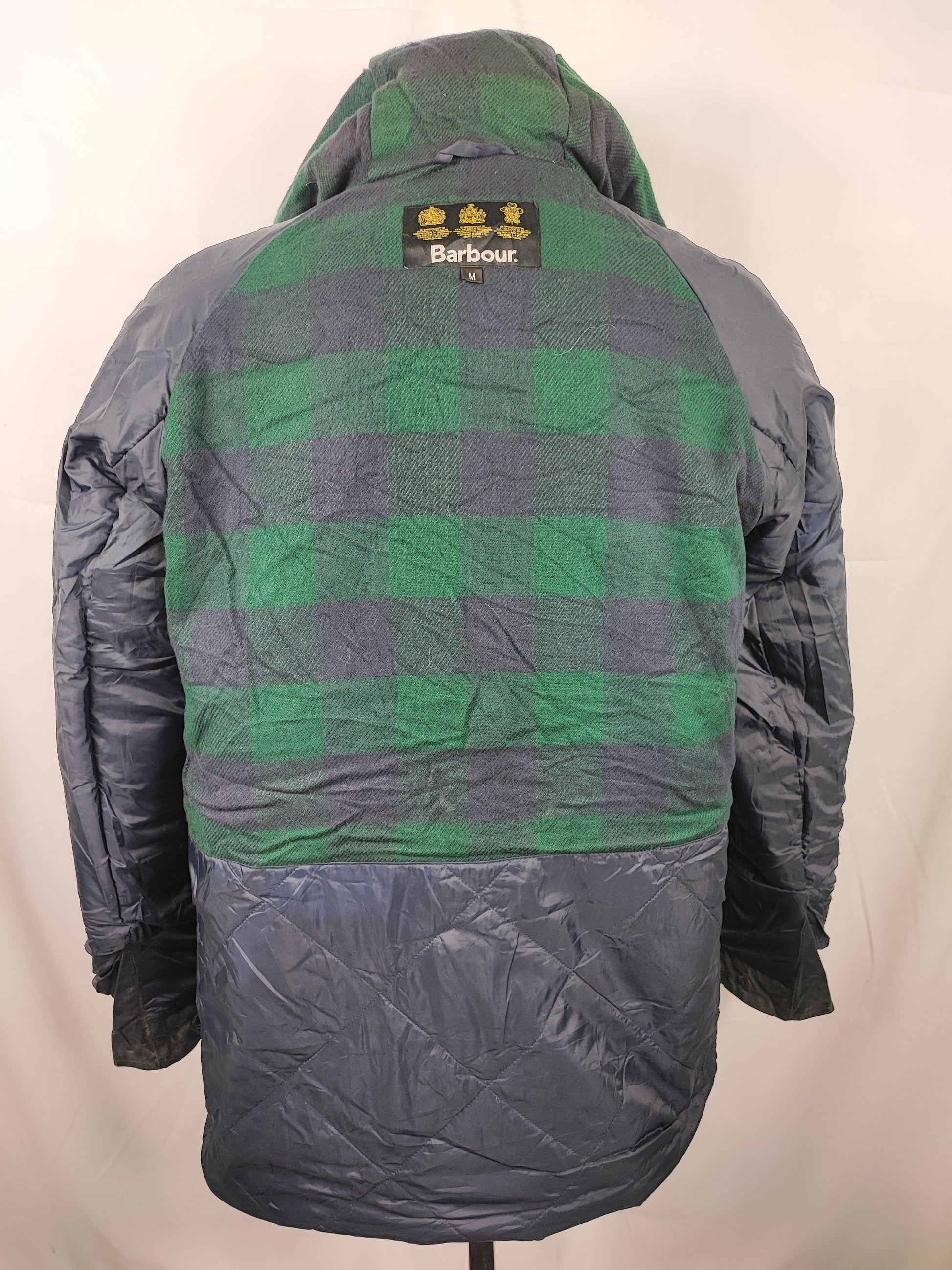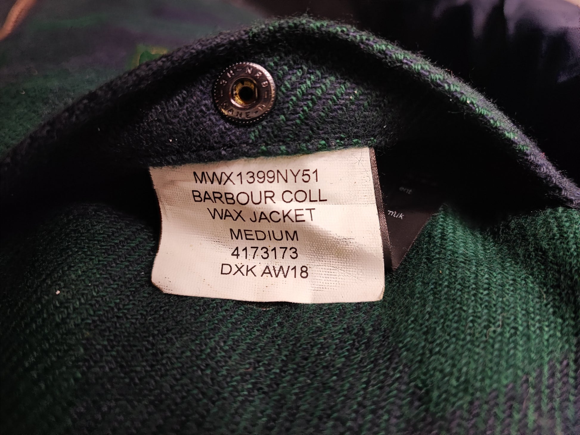 Parka Barbour blu in cotone cerato modello Coll con inserti in Tweed sui gomiti, imbottito internamente con fodera in black watch, appartiene alla collezione NAUTICAL .
