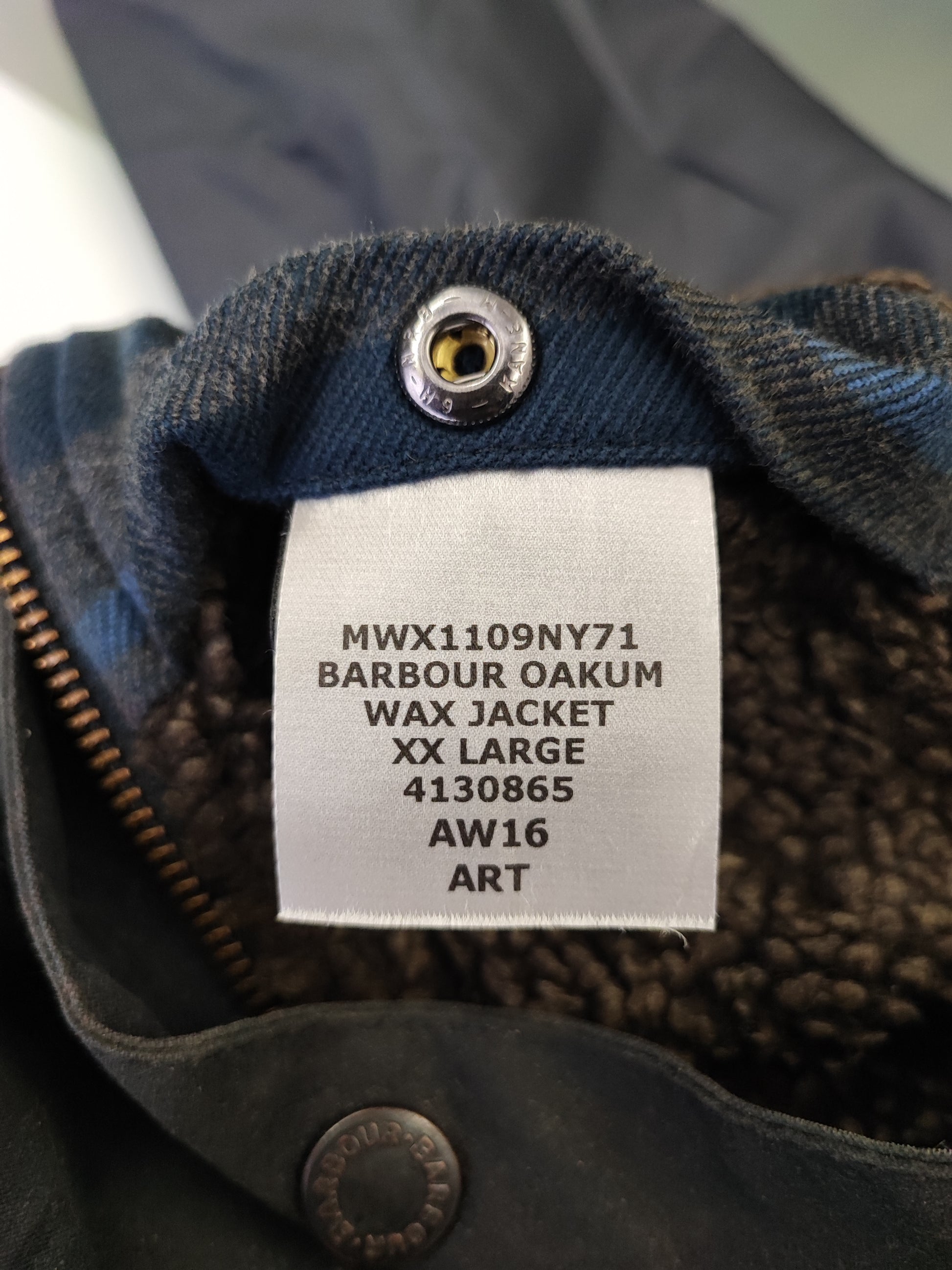 Giacca Parka Barbour, modello recente Oakum della collezione AW 2016 taglia XXLarge ( LEGGERE BENE LE MISURE QUI SOTTO)