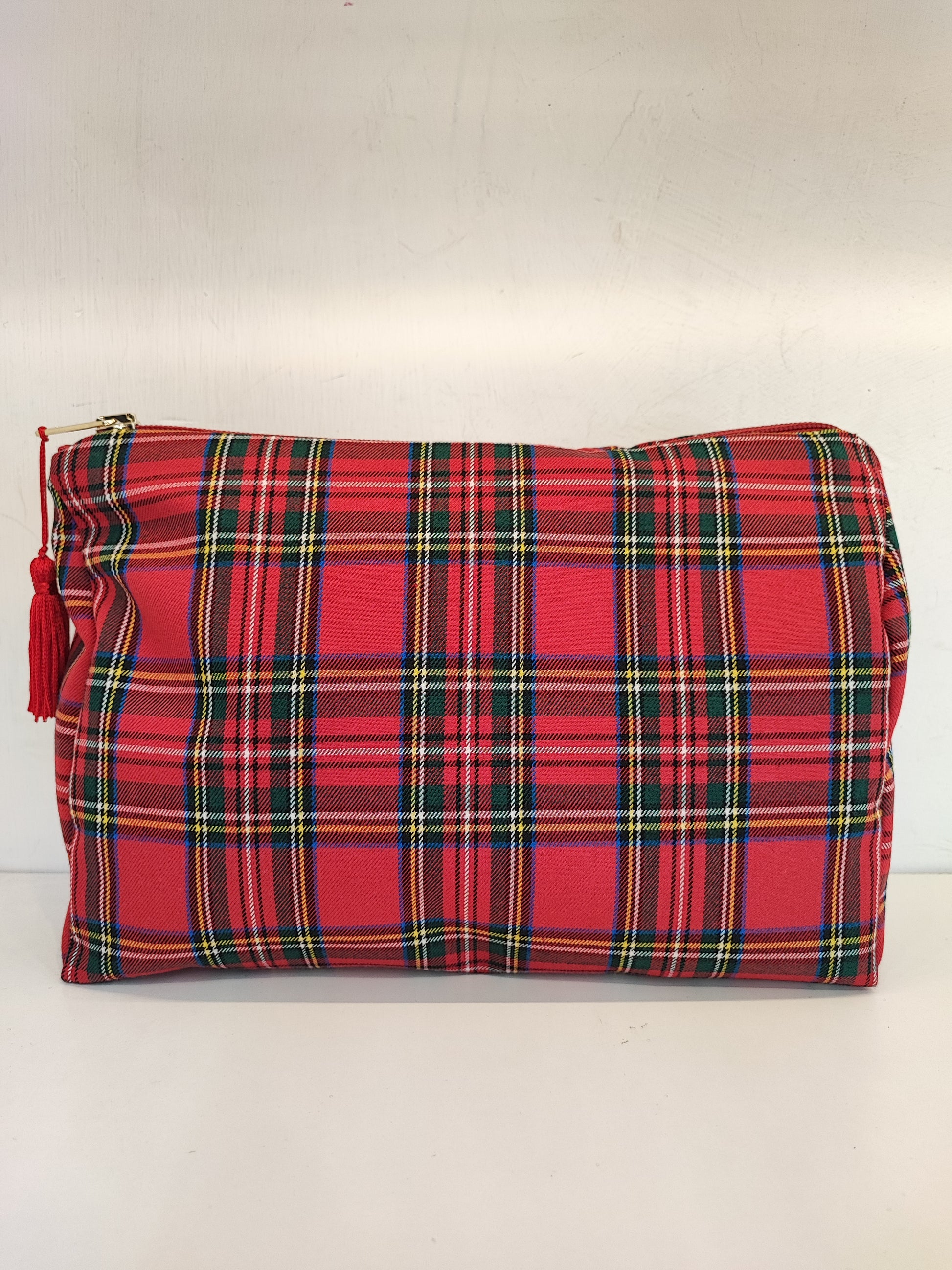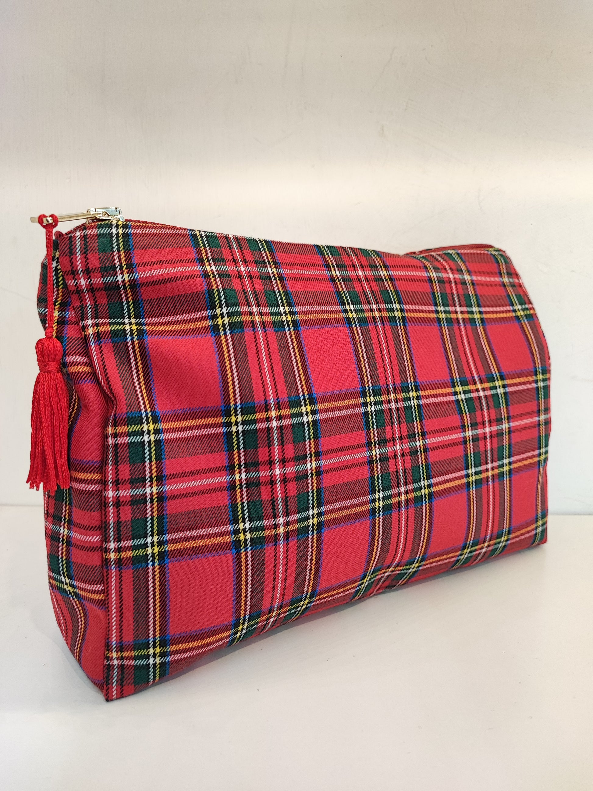 Pochette in cotone realizzato in Italia con fantasia scozzese rossa e nero