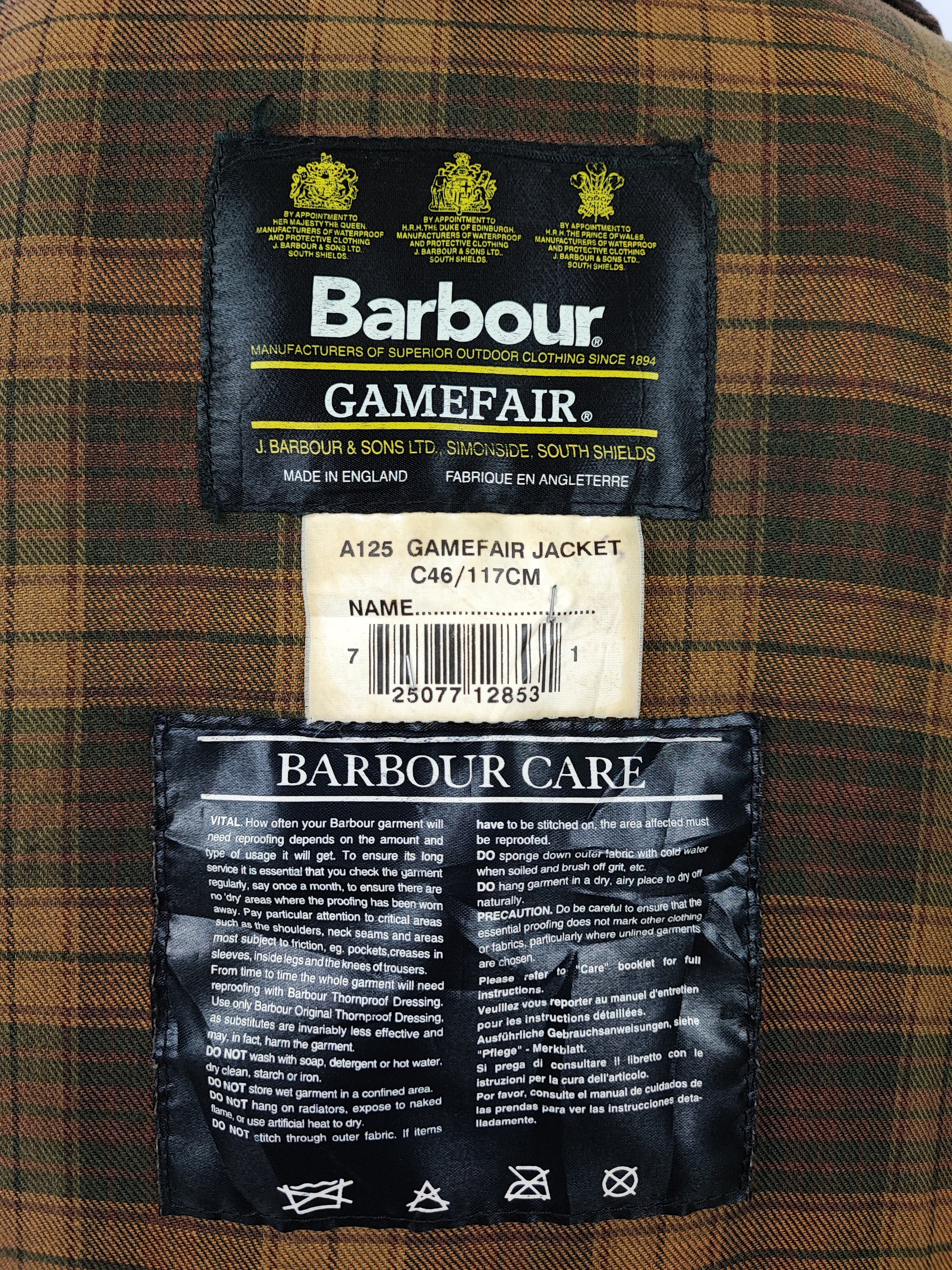 RARA Giacca Barbour vintage di colore marrone modello Gamefair taglia c46/117 cm corrisponde ad una 56 italiana circa ( LEGGERE BENE LE MISURE QUI SOTTO)