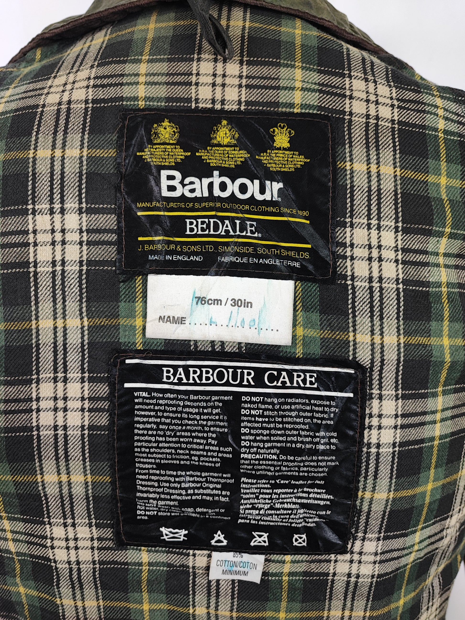 RARA Giacca Barbour Bedale verde a quattro tasche , prima serie del Bedale con le quattro tasche frontali , risalente alla fine degli anni.