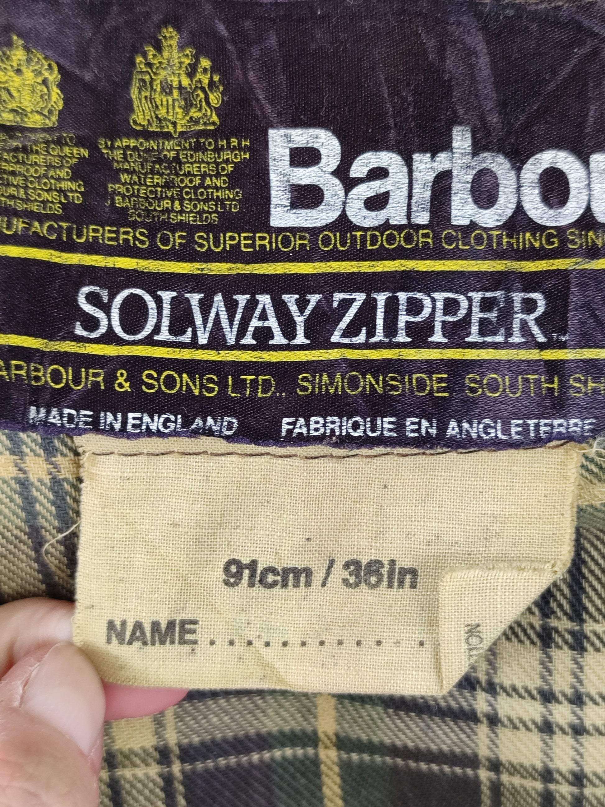 RARA Giacca Vintage Barbour Solway Zipper della fine degli anni 80 a due corone