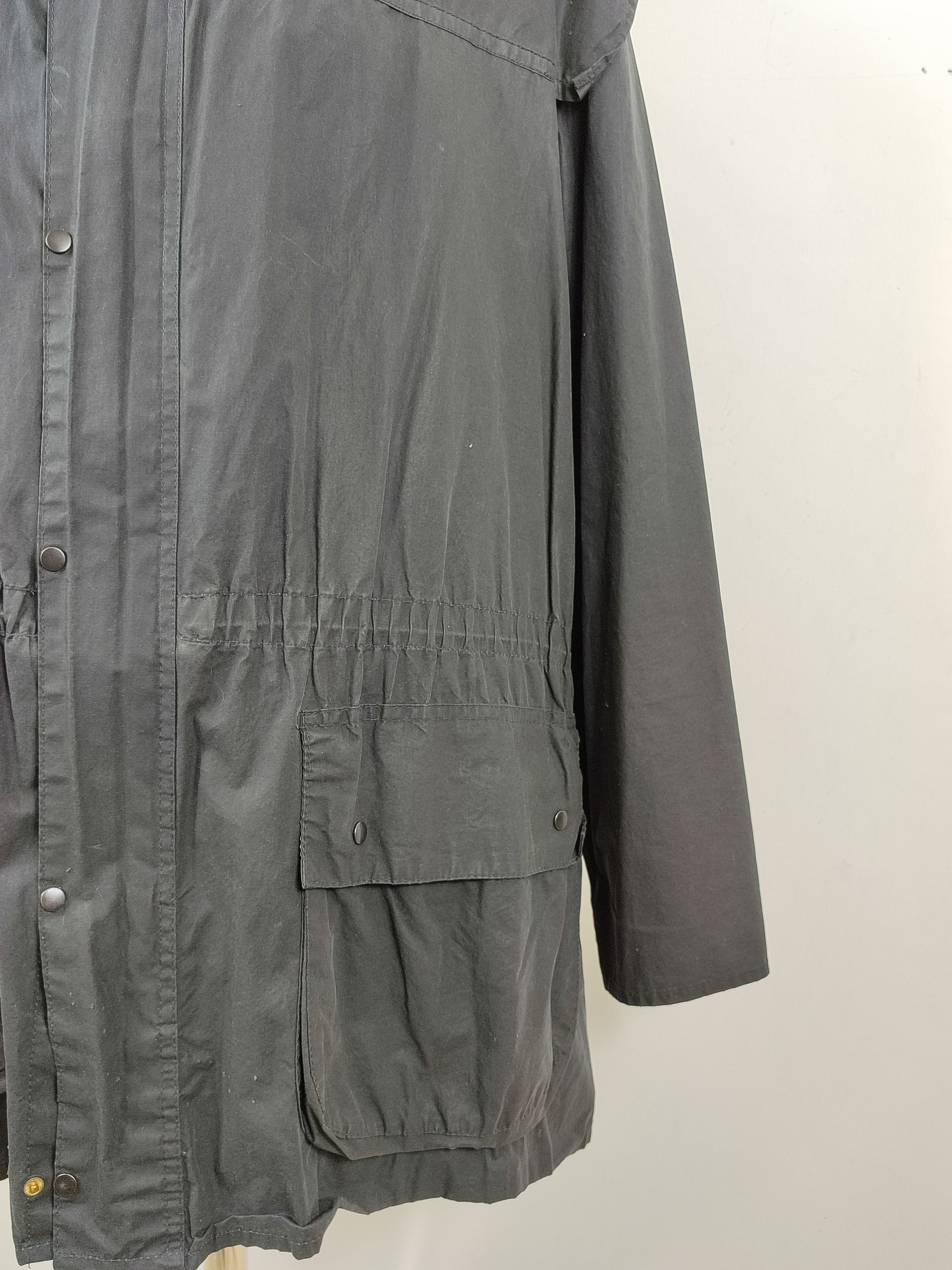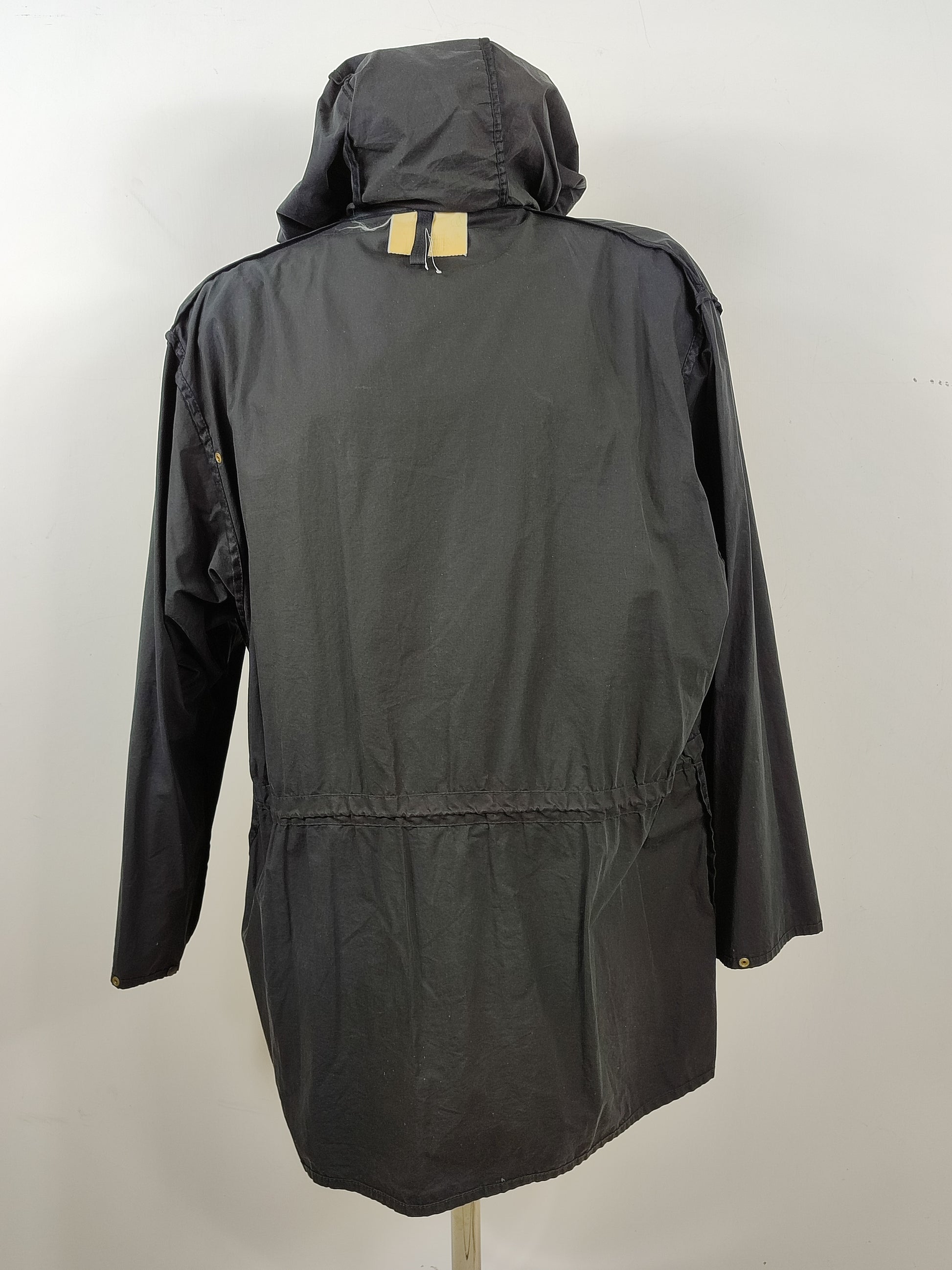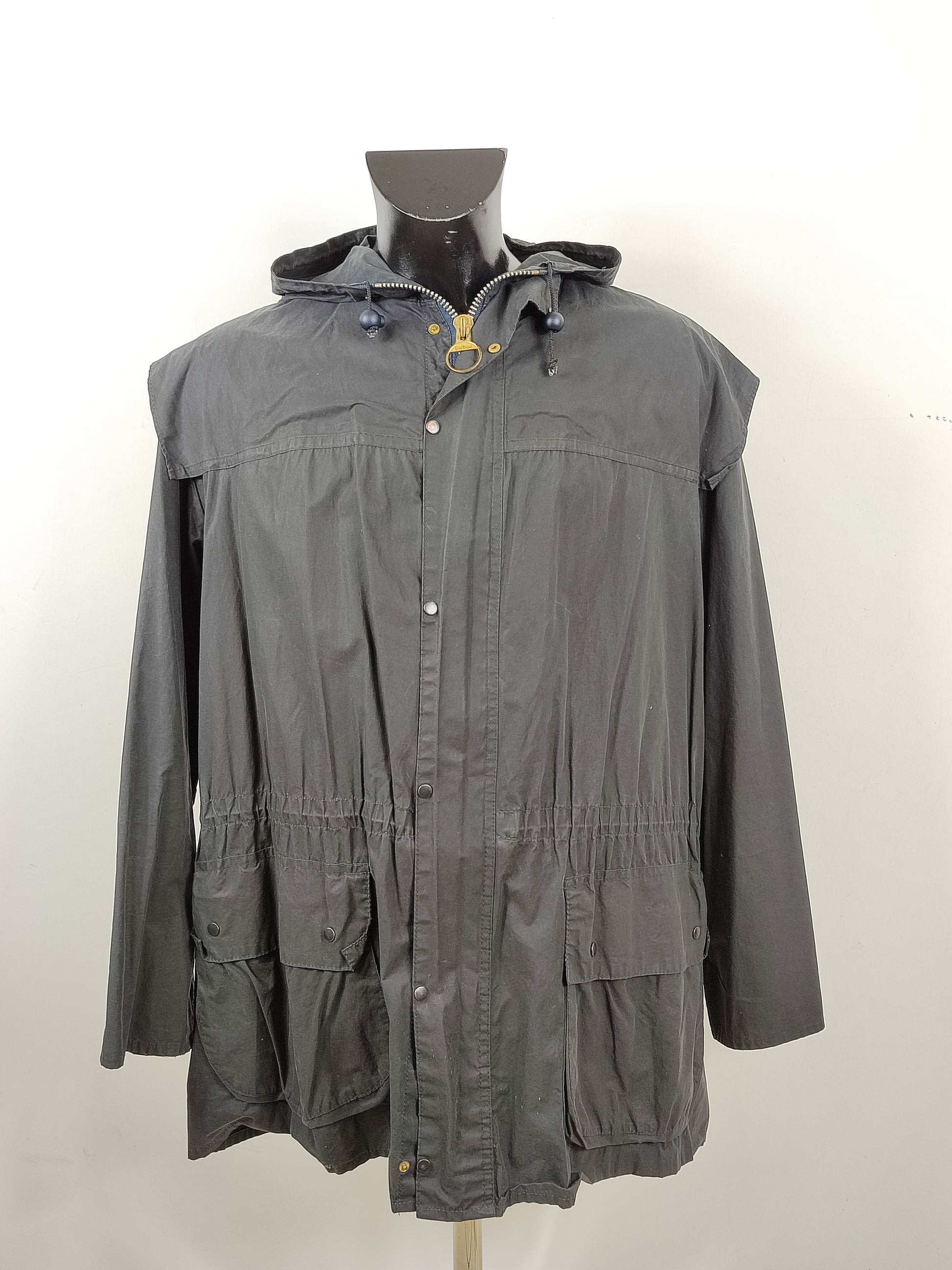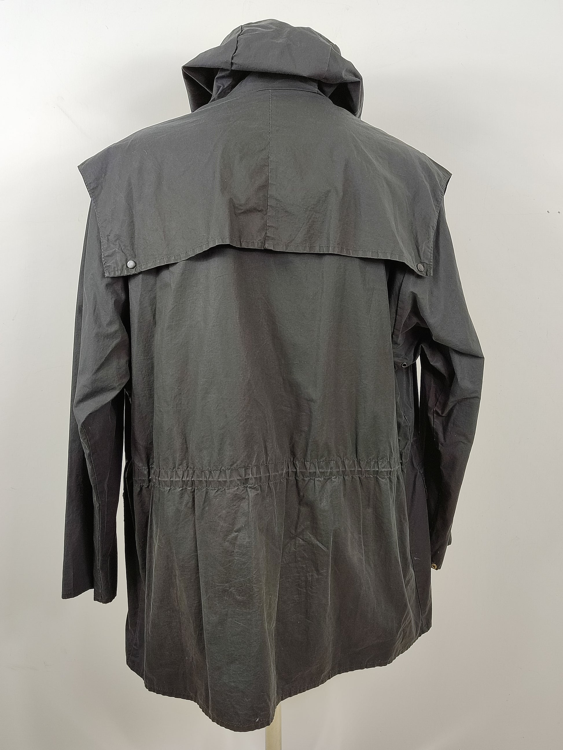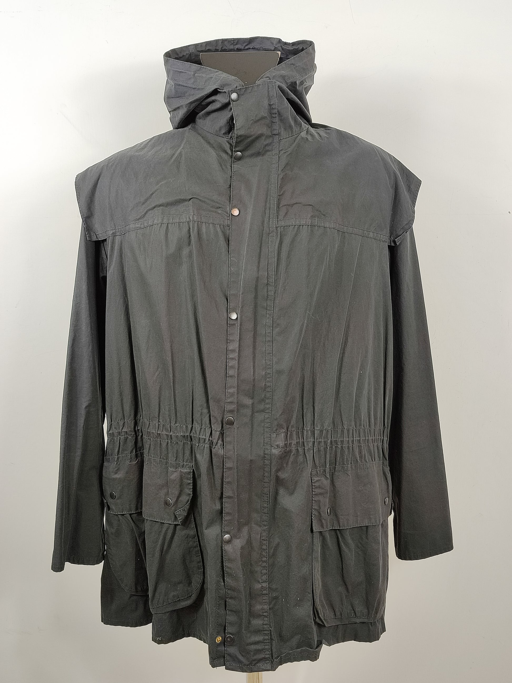 Giacca Vintage Barbour modello Durham colore blu, completo di cappuccio e mantella.