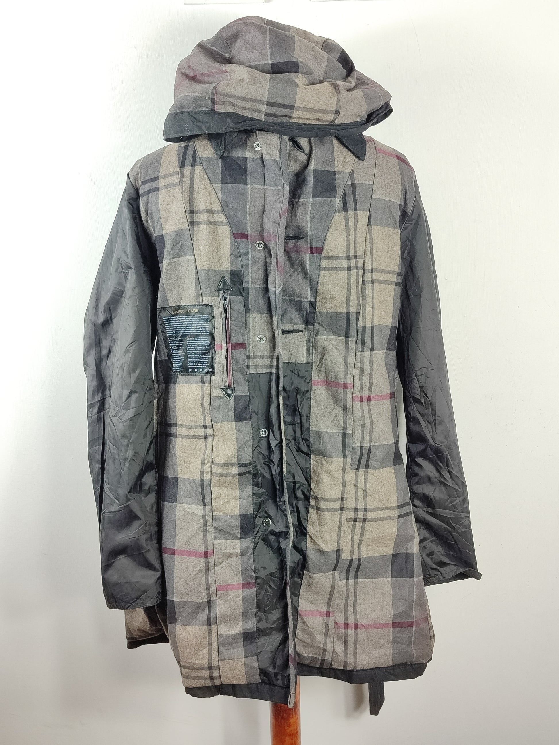 Chiusura tramite bottoni , completo di cintura e cappuccio